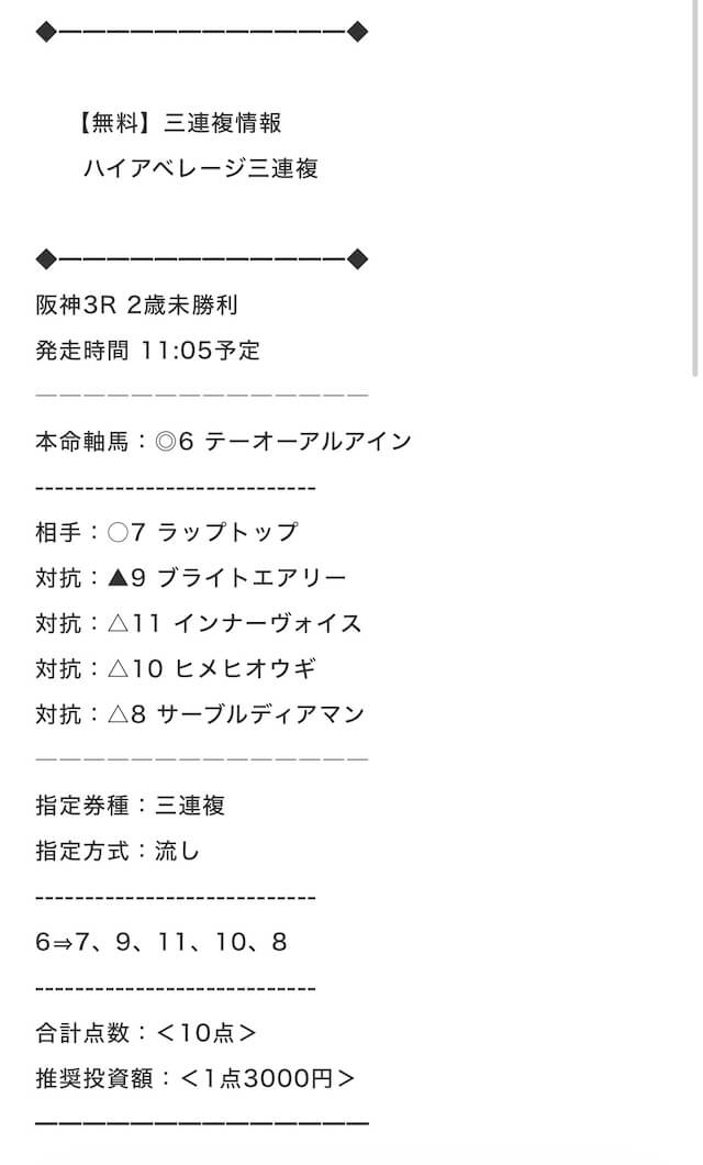 むしろ無料で外すくらいなら、最初から勝負かけるべき。日曜だけじゃなく土曜も結果出てるのが最高。今週も頼んます! -