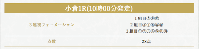 今レースは、3連単フォーメーションのみで公開。