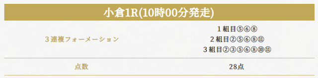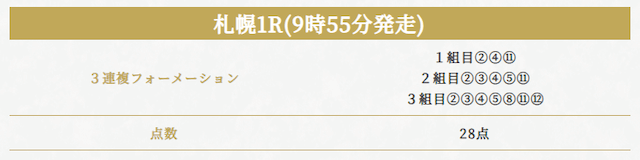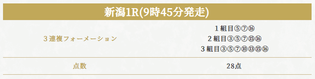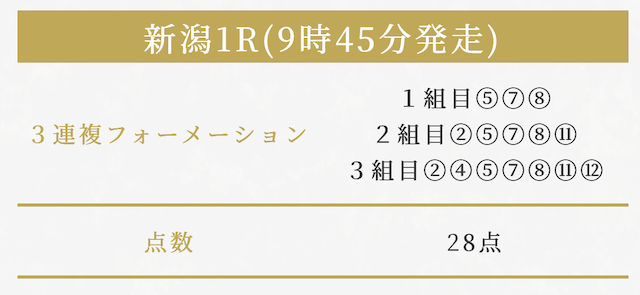 実際に公開されていた買い目がこちらです。