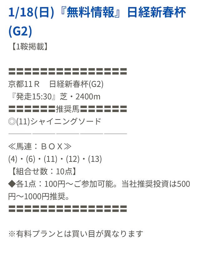 - 無料予想は的中率低め
