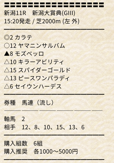 頂馬券塾が選んだ馬は、前走から1頭増えた7頭。