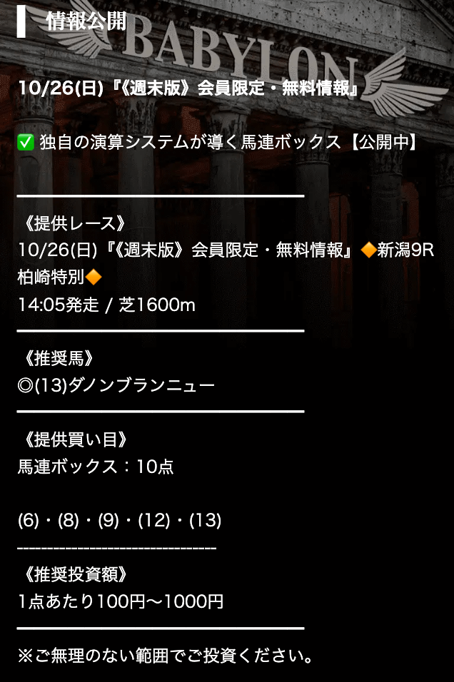 今回検証するのは「バビロン(BABYLON)」という競馬予想サイトです。