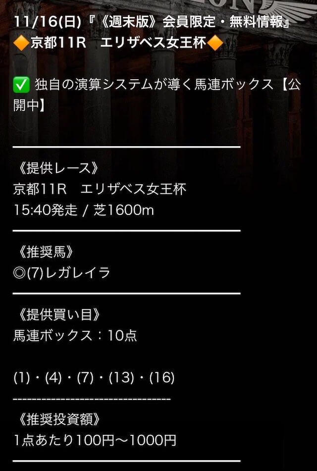 プラン料金16万円を支払っているので、不的中の際は手痛い出費。
