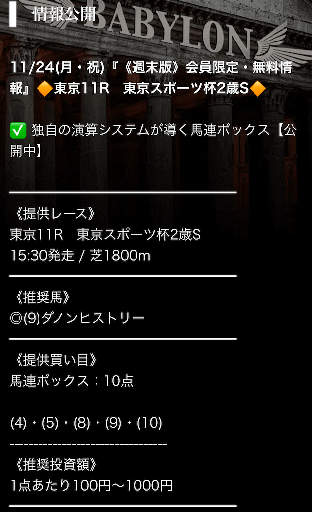 これだけ当たる予想を公開してくれたのは、バビロンだけでした。