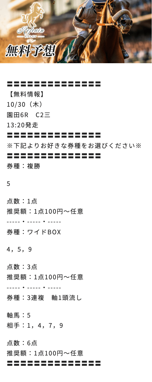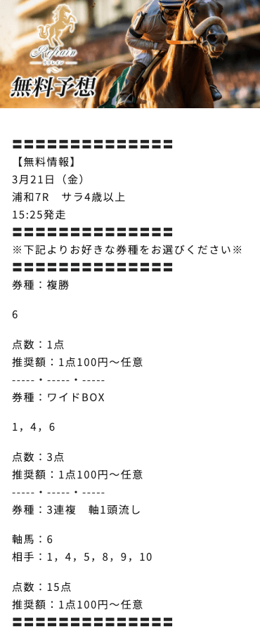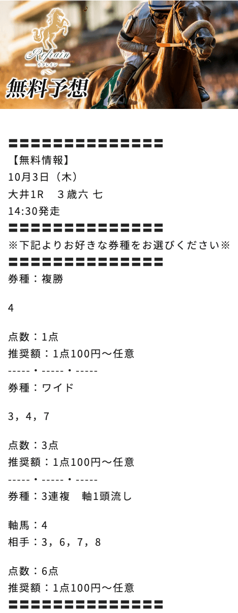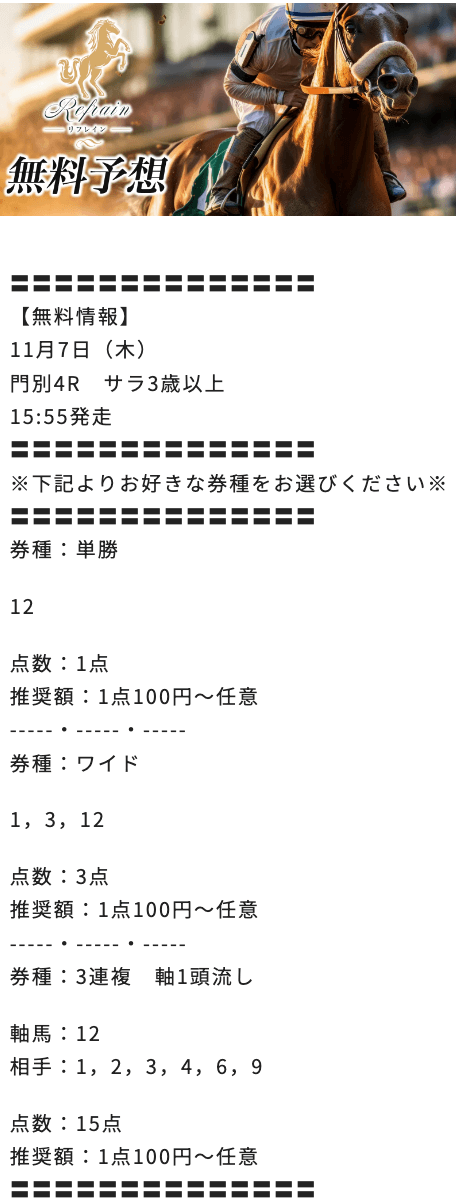 - 無料予想の参加数No.1!リフレインのリアルな成績