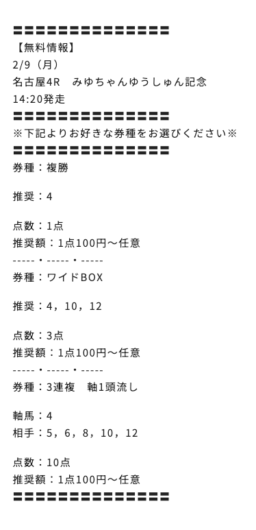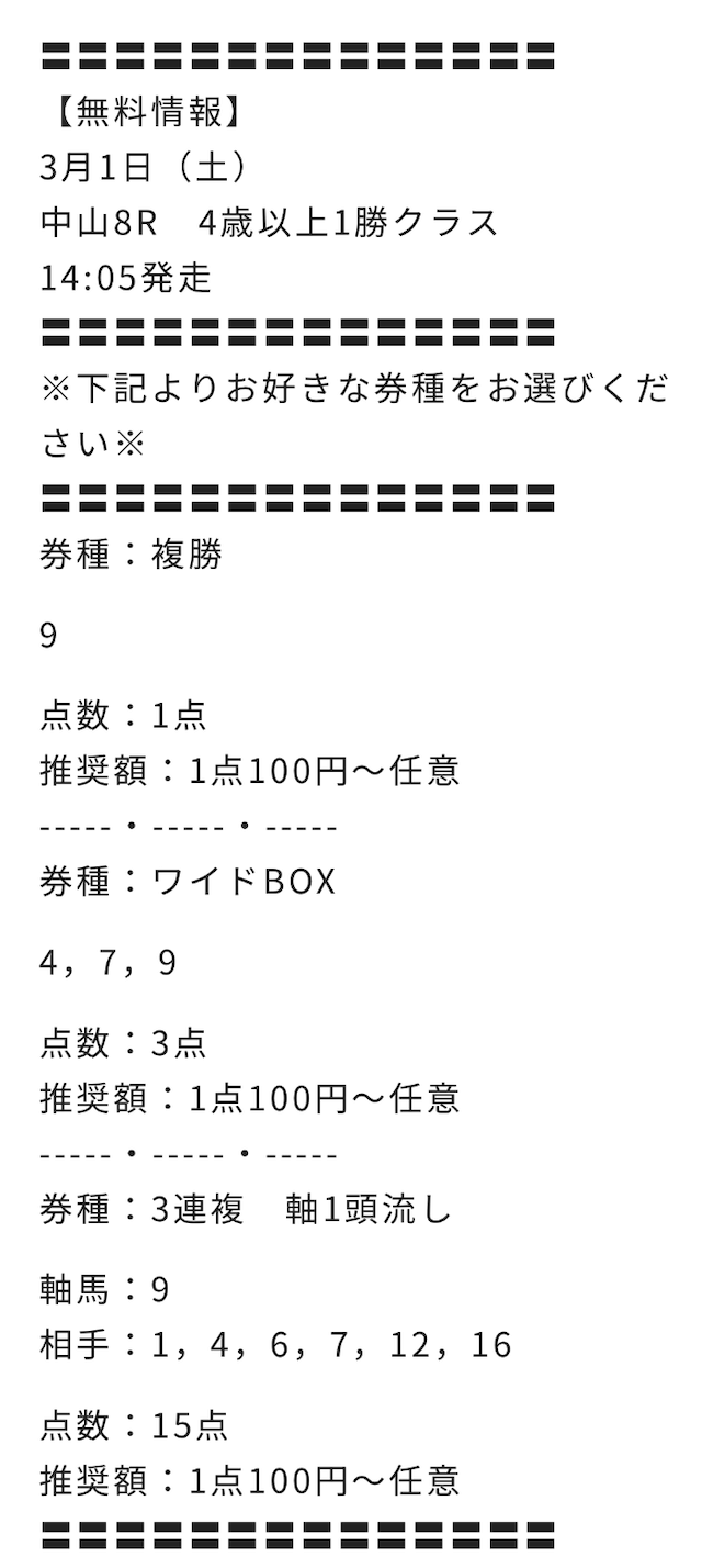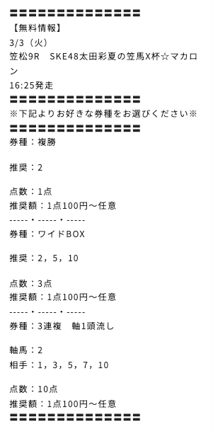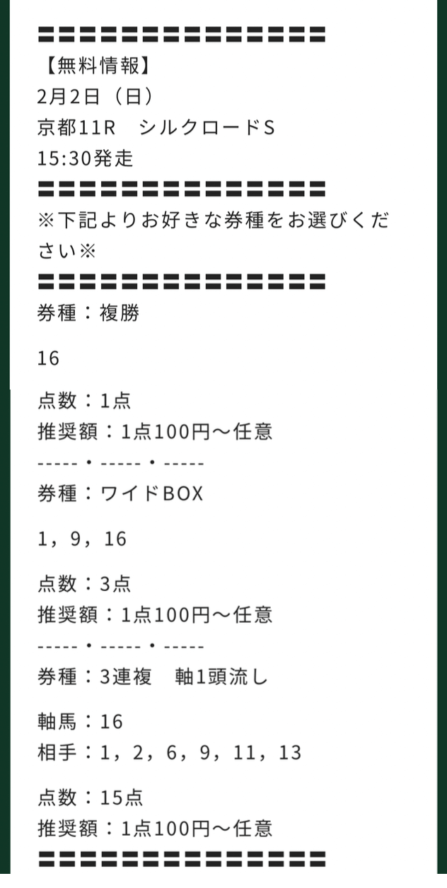 あとは、しっかり買い目が公開されるのか、待っていきたいと思います!