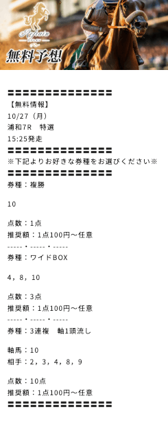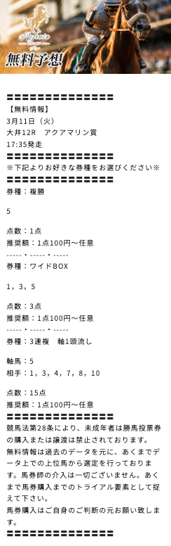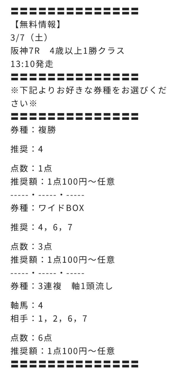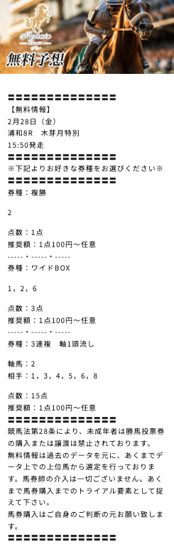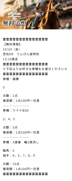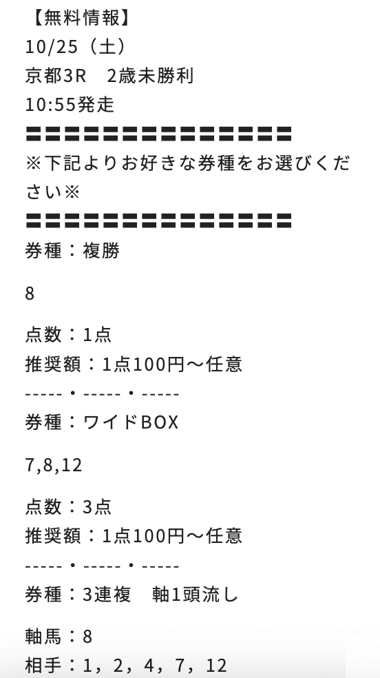 購入後には、きちんと買い目も公開されており、情報が届かないといった詐欺的な要素は確認されませんでした。