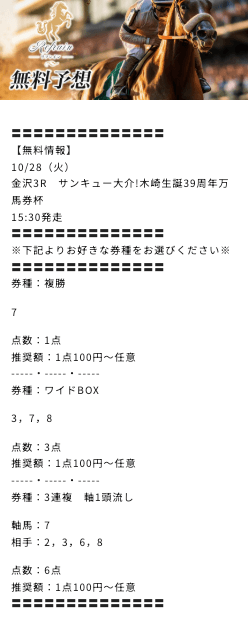 ただし、的中保証や返金対応といったサポートはなく外れた場合はすべて自己責任。