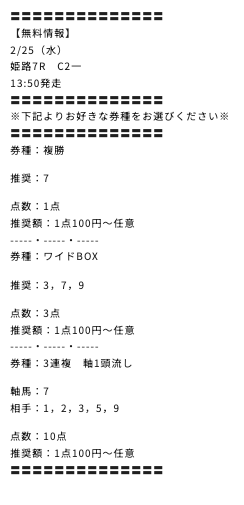 - 有料プランで連続で的中した