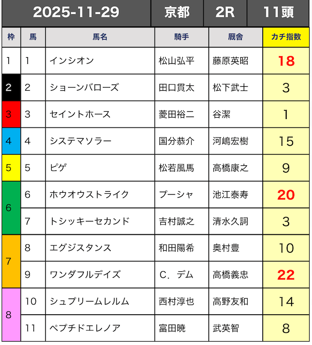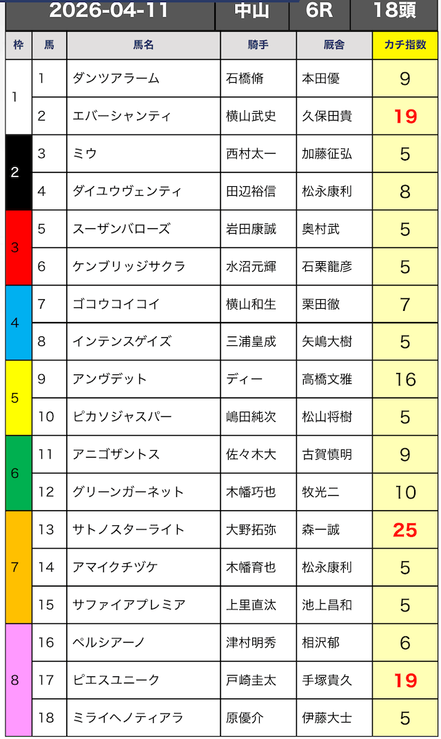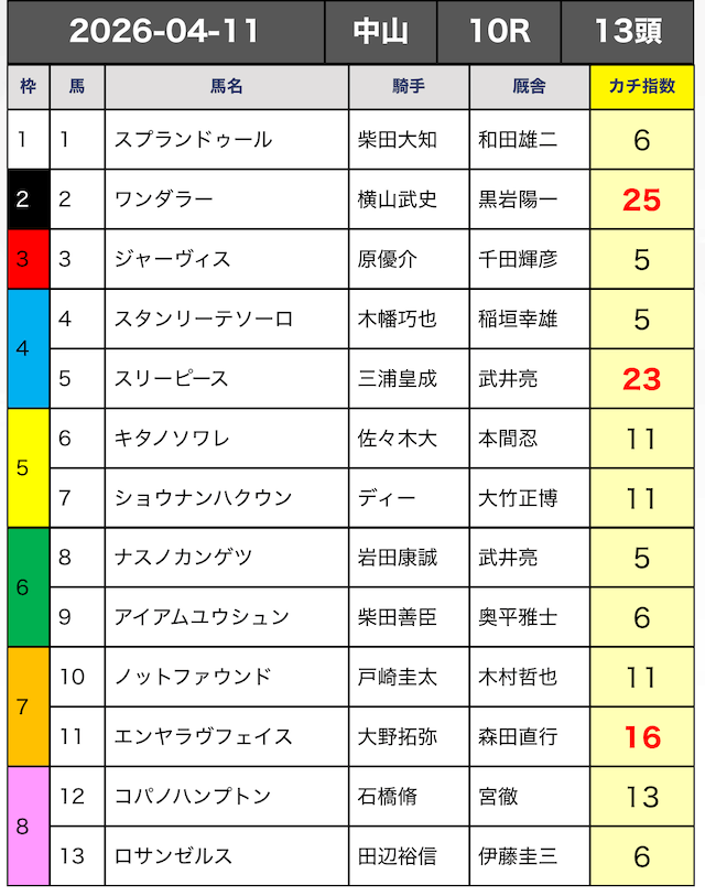 無料情報の指数かなり参考になるから見た方がいいね。下手な予想より全然使えるし