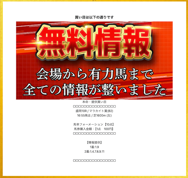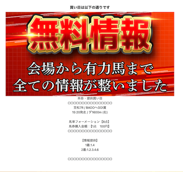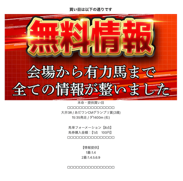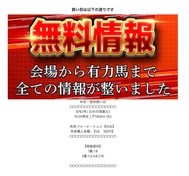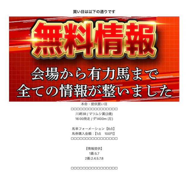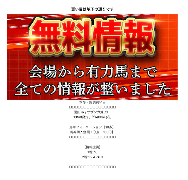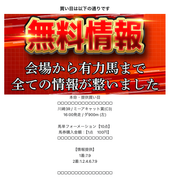 無料予想がコンパクトで買いやすい。資金配分がしっかり考えられていて、初心者の自分でも安心して参加しやすいね