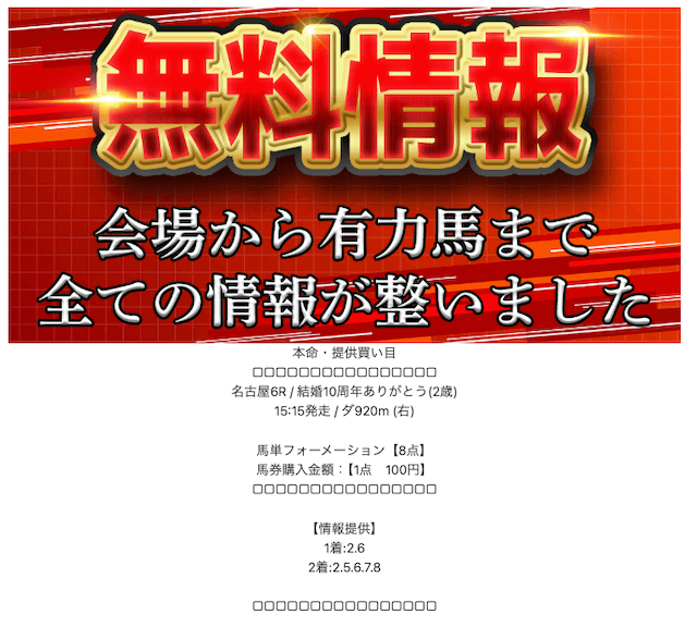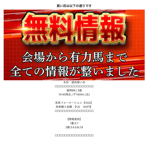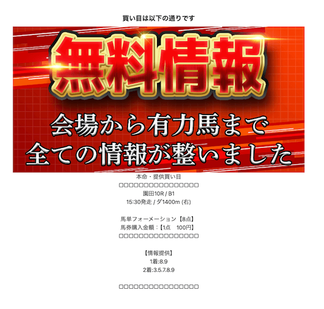 無料予想を試してみたらまさかの5連勝。特に新潟のレースで大穴を拾ってくれた時は鳥肌が立ちました。ここまで堅実かつ攻められるサイトは初めてです。