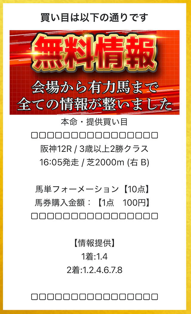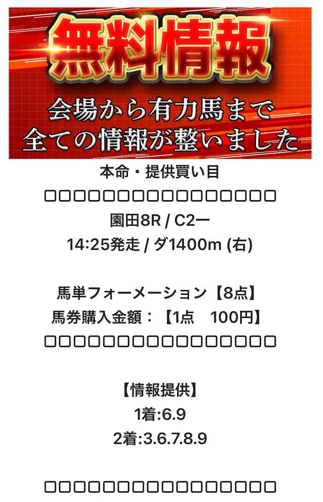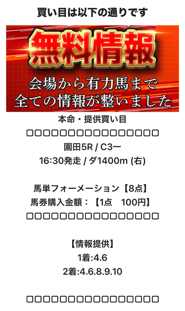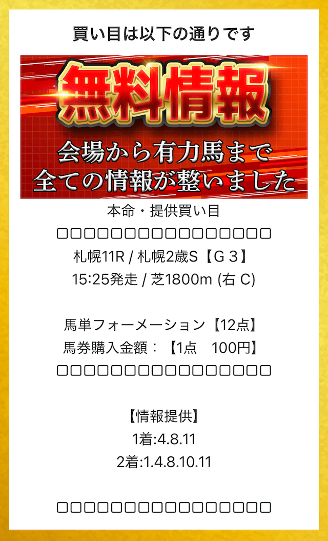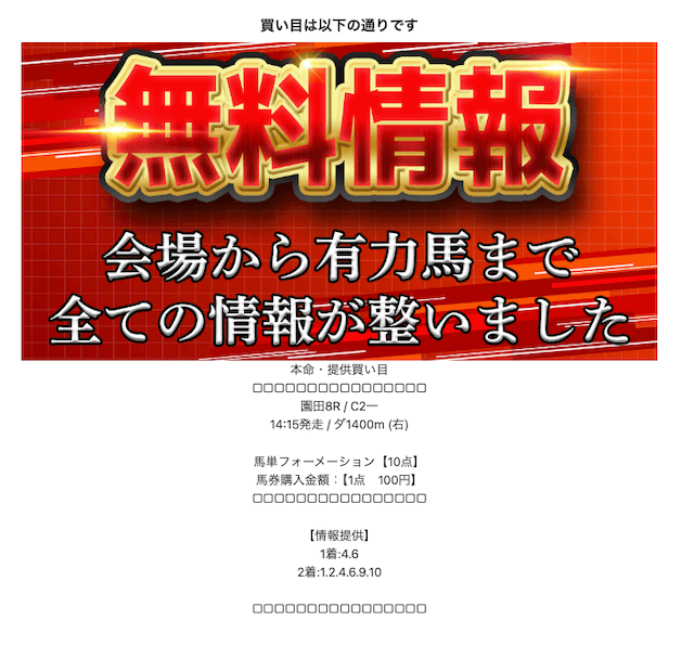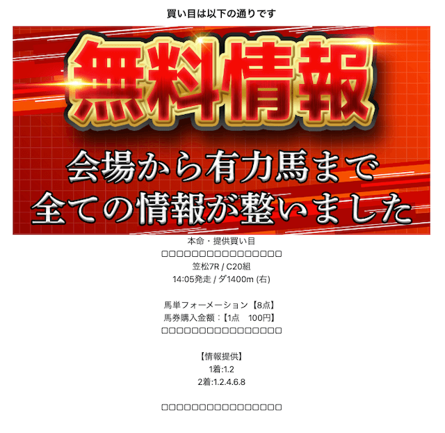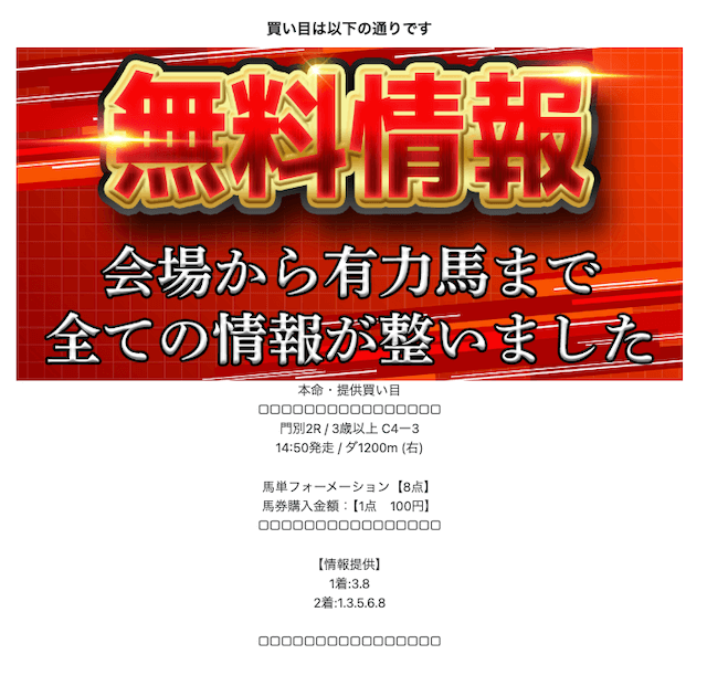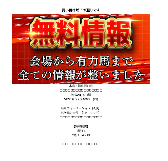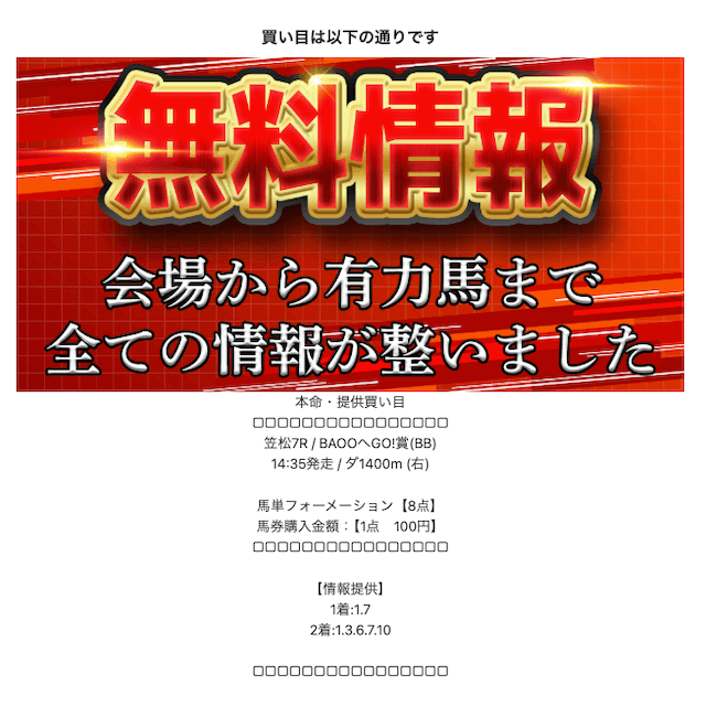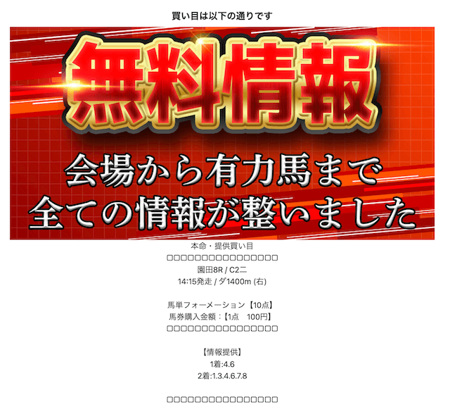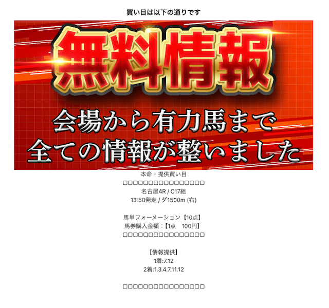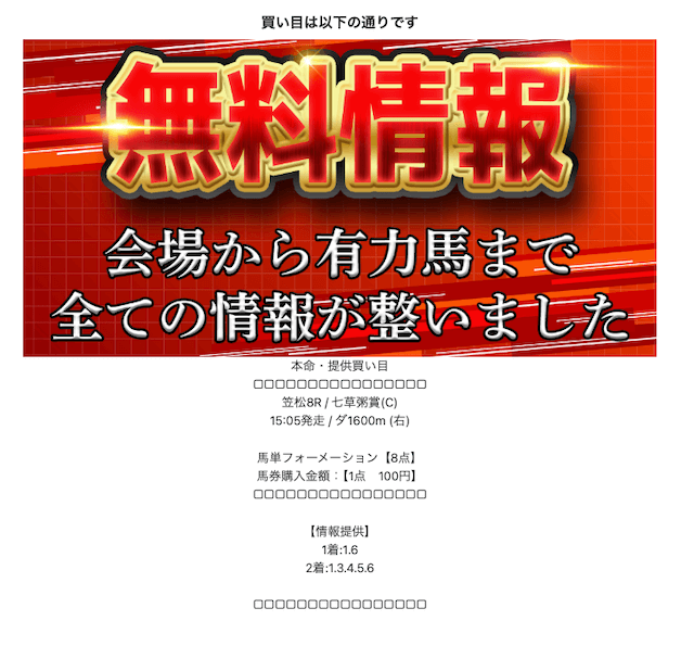 登録後はLINEのトーク画面にて本命の情報を閲覧することができます。