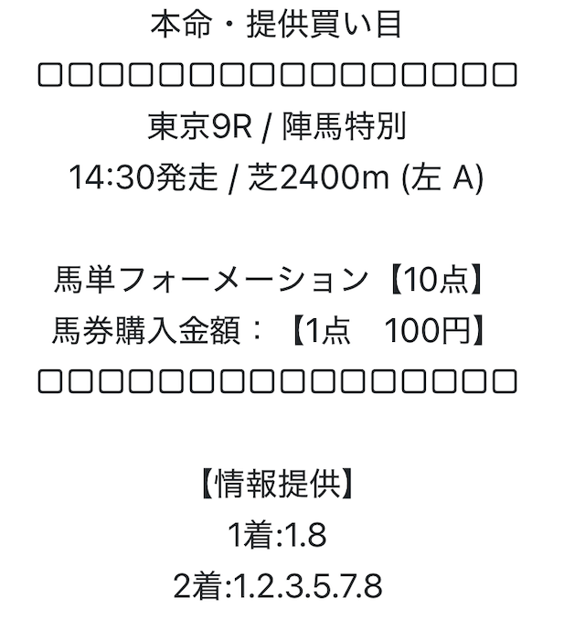 私が今回も身銭を切って、本命の予想を使ってみたいと思います。