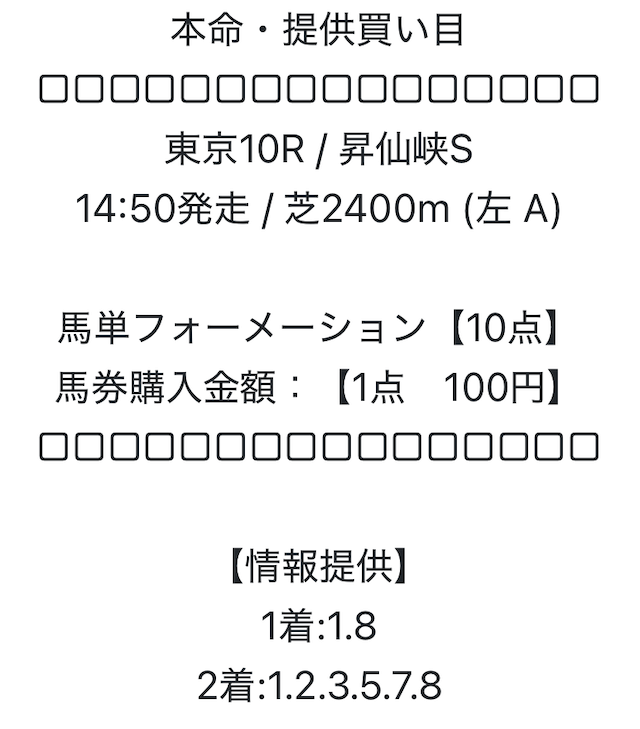 今回も前回と同様に、馬単フォーメーション10点での公開。