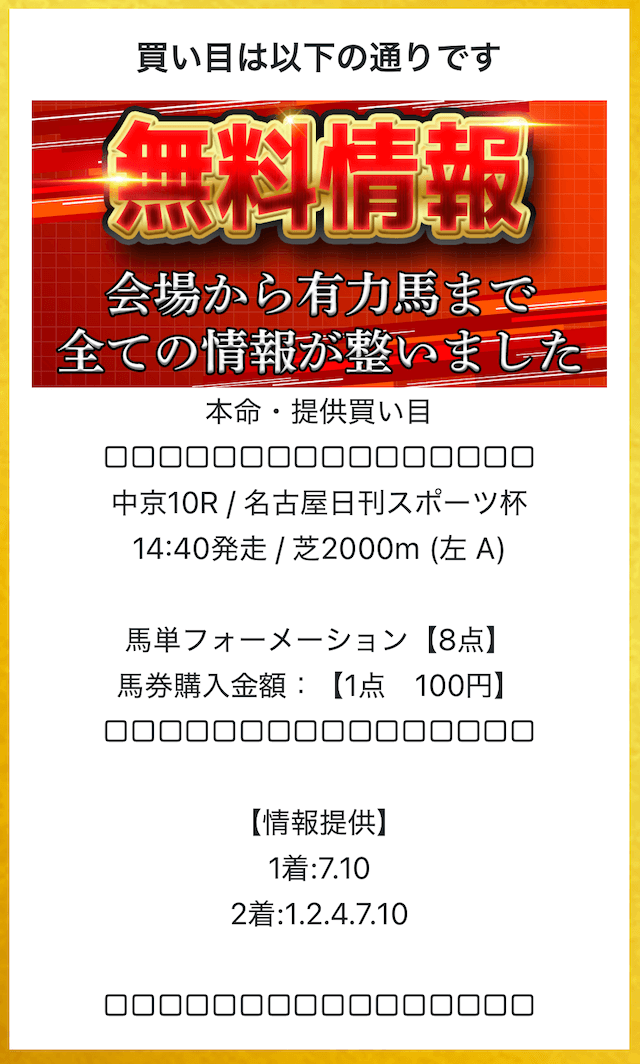 - 本命の有料予想の実力