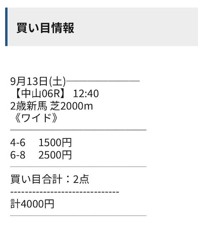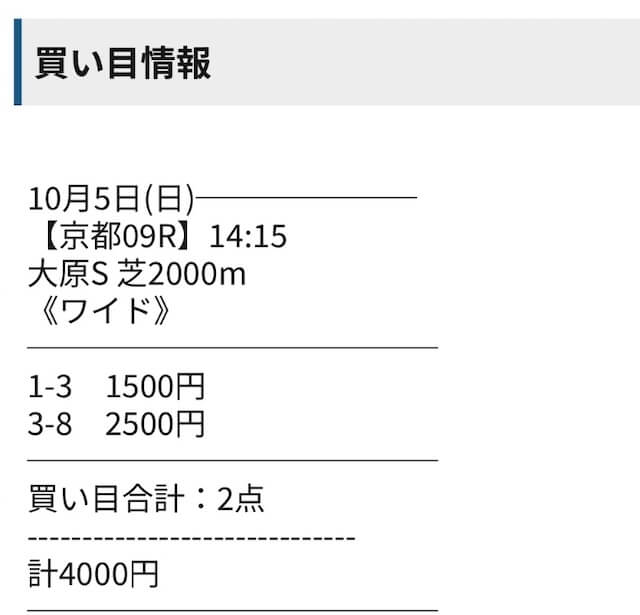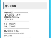 | ’24/08/25 札幌11R | 投資ドリブン | ◯ | +177,240円 | 38,000円 3,600円 | 218,840円 |