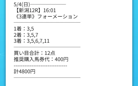 予想の公開頻度は少ないけど、その分アホほどあたります -