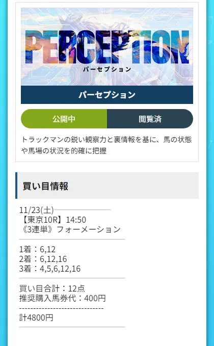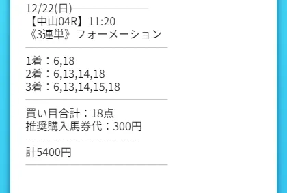 さらに、公開されている買い目の点数が少なく金銭的な負担も抑えられているようです。