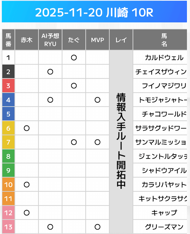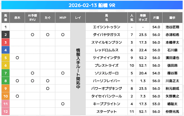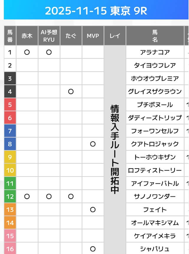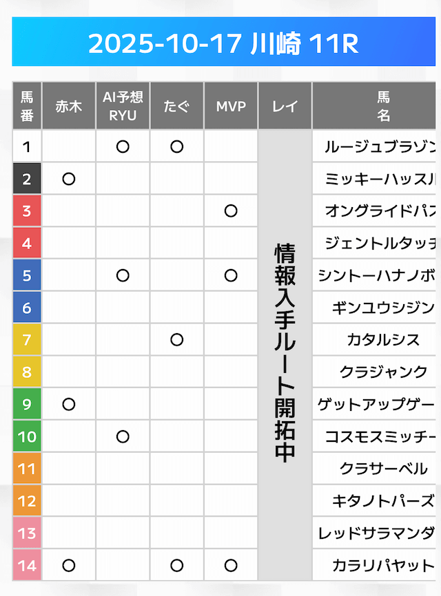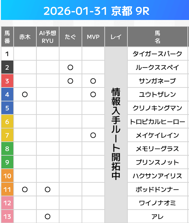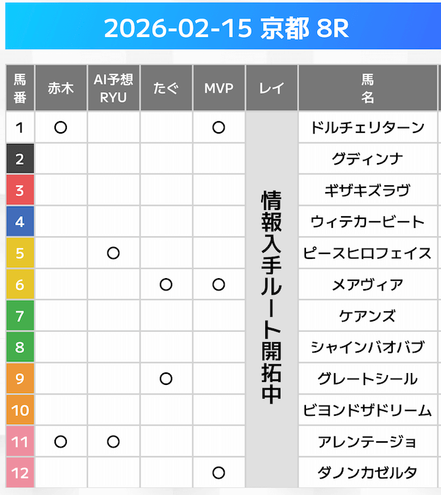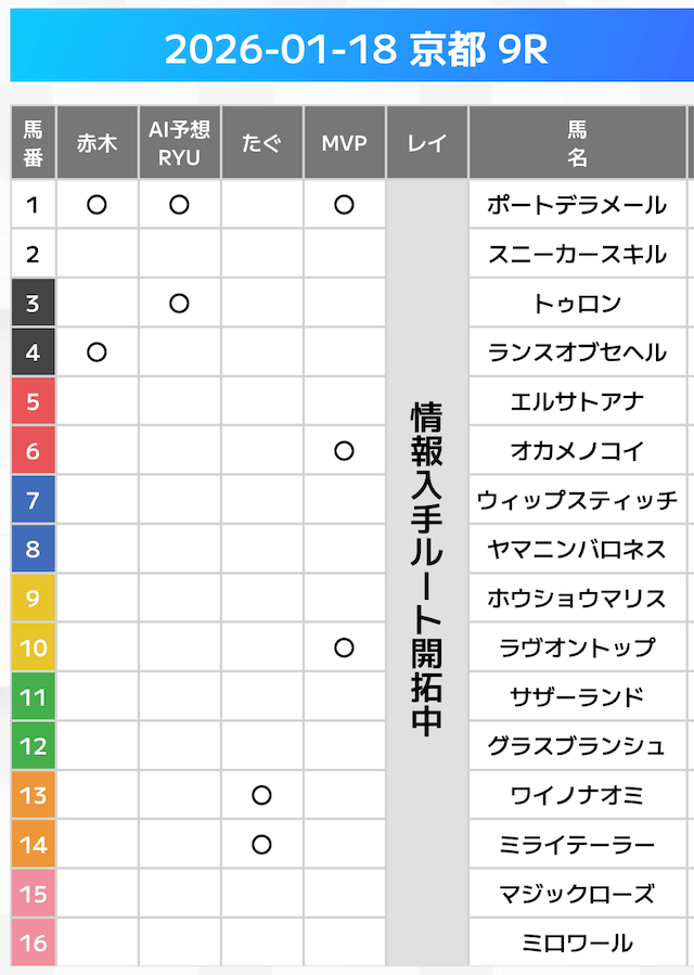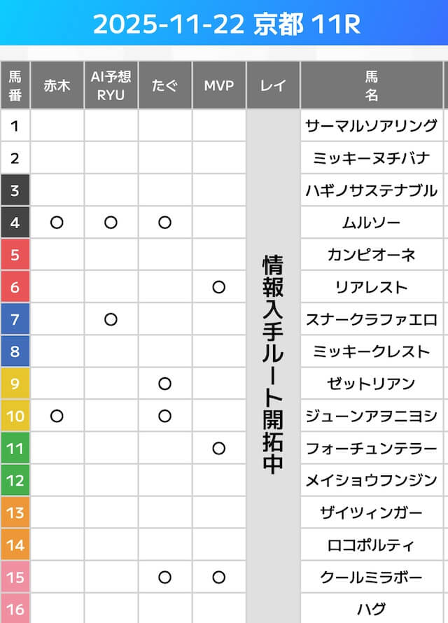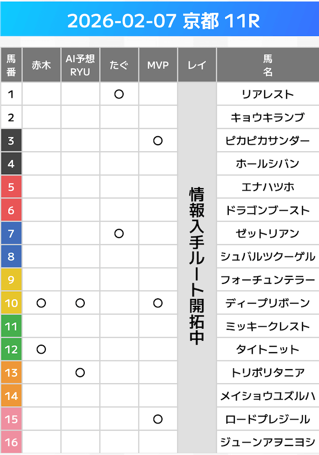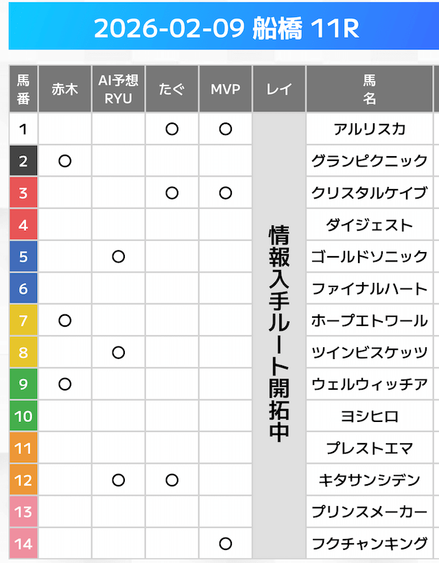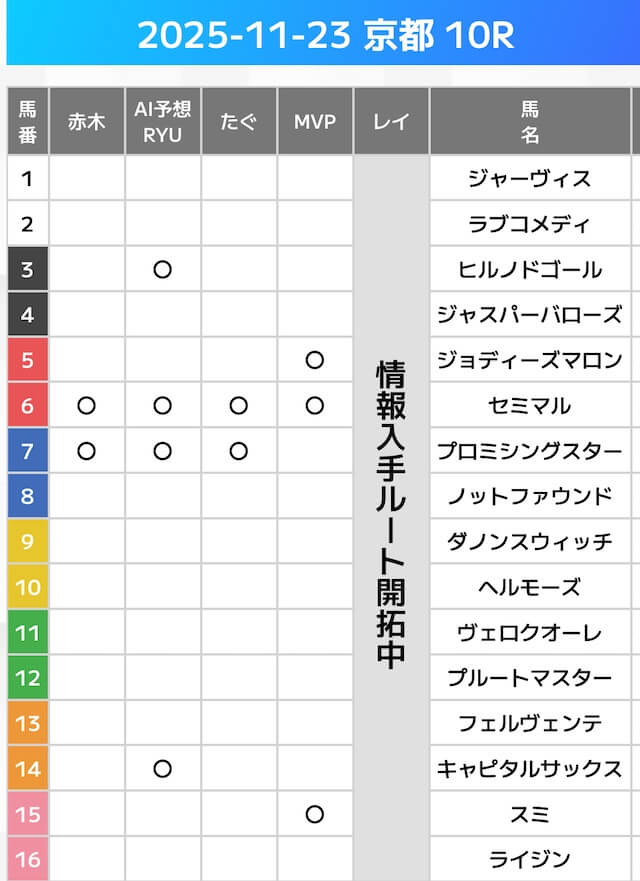 相手には、上位人気を中心に穴馬を絡めた選出です。