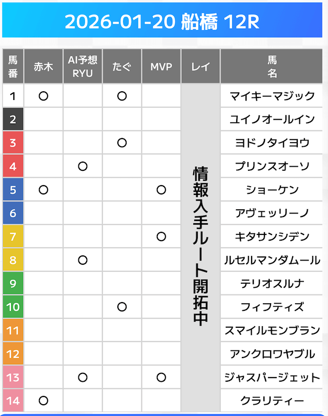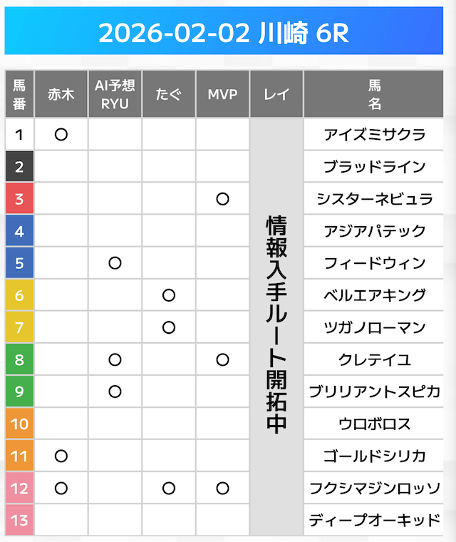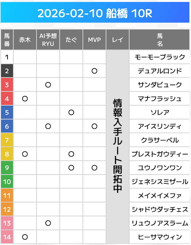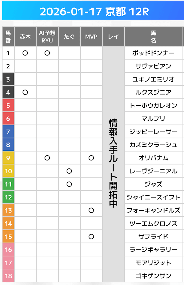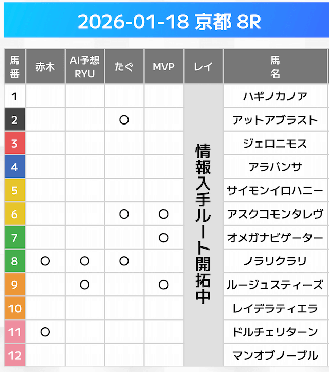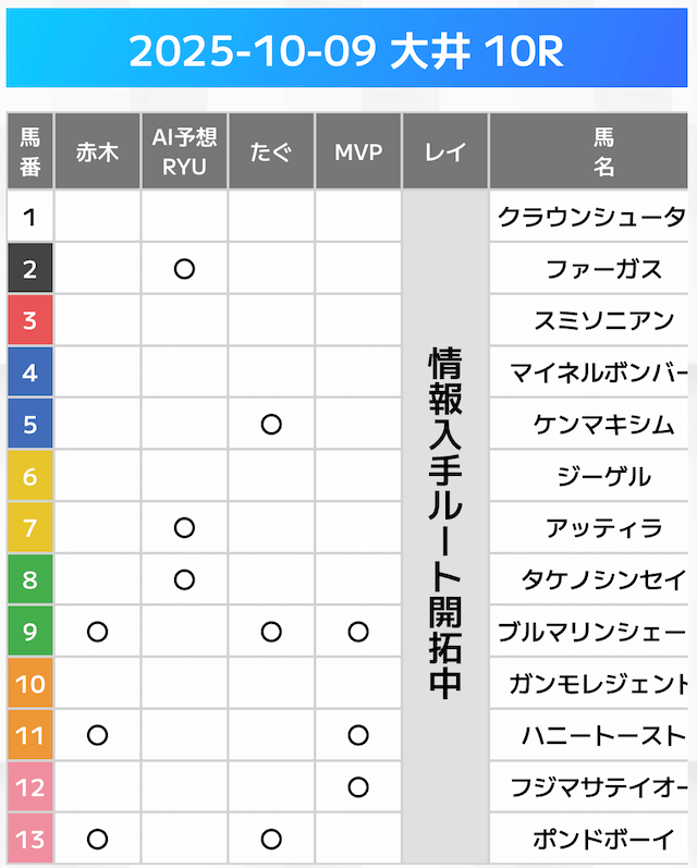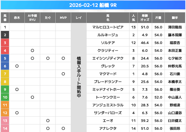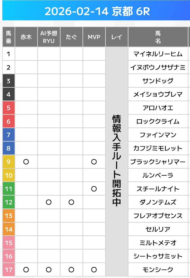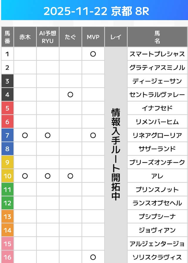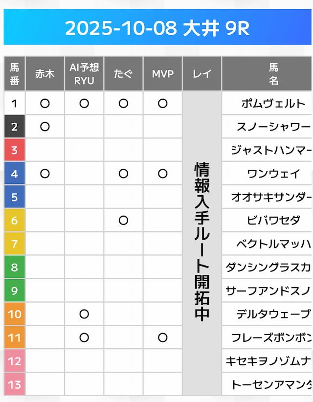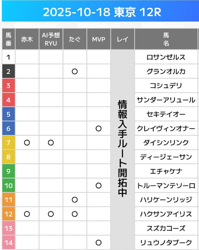 相手には、上位人気を中心に穴馬を絡めた選出です。