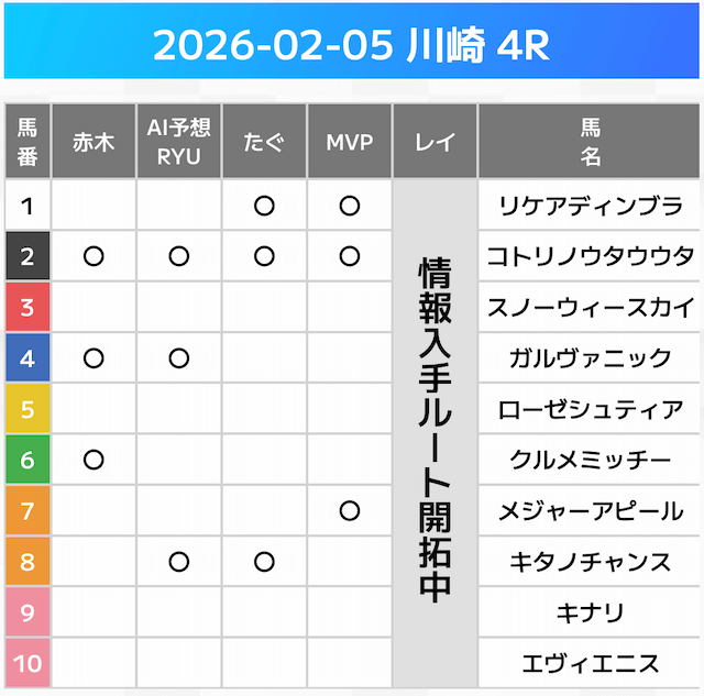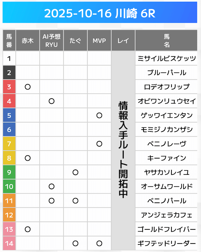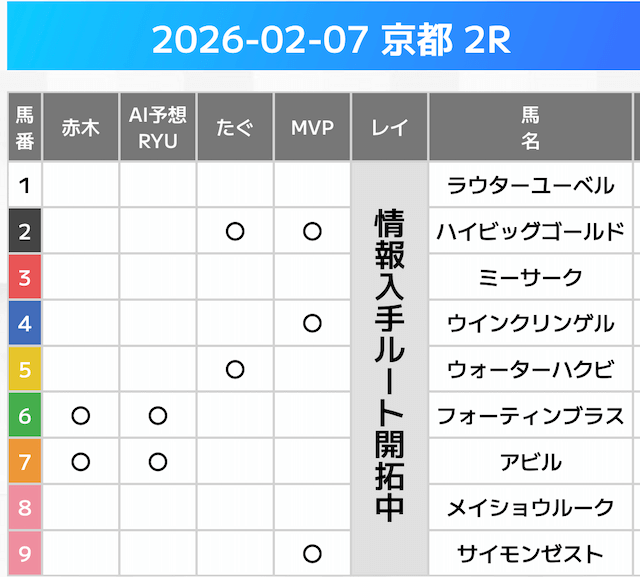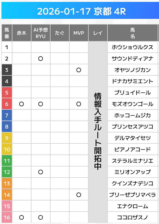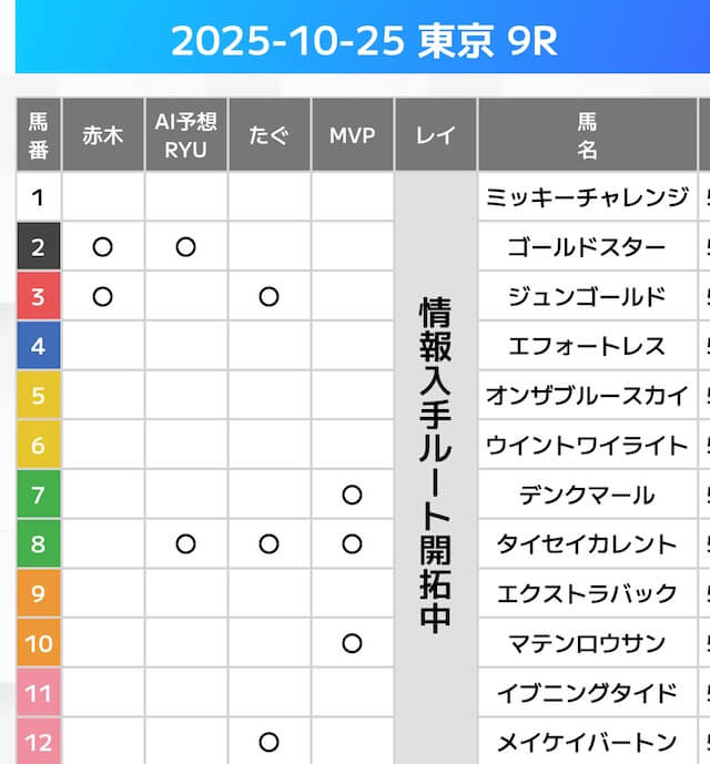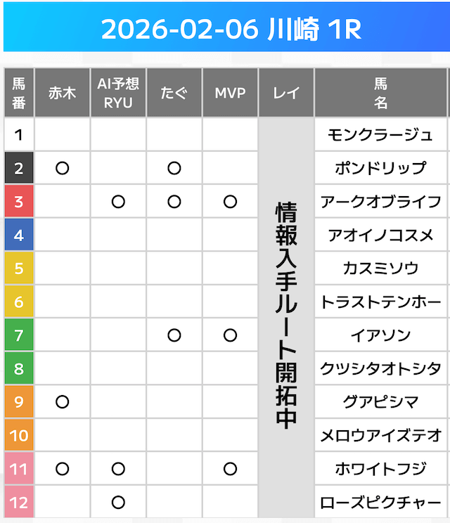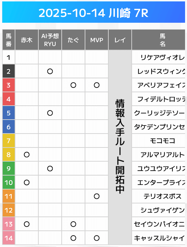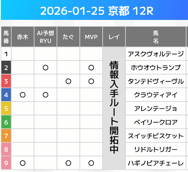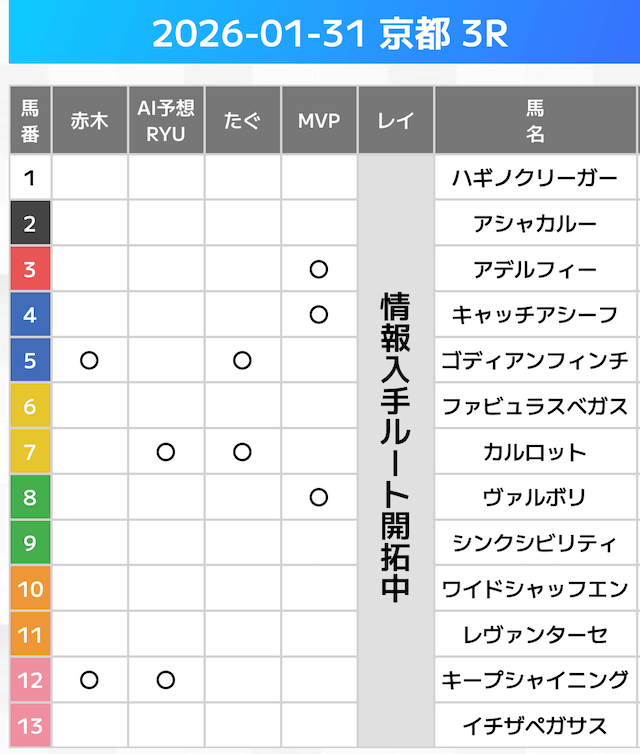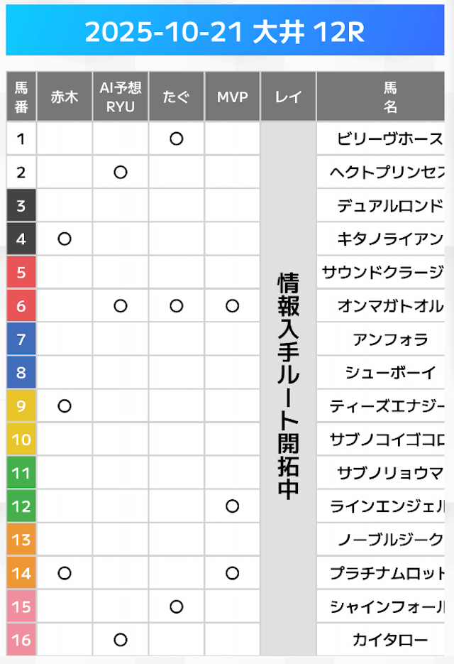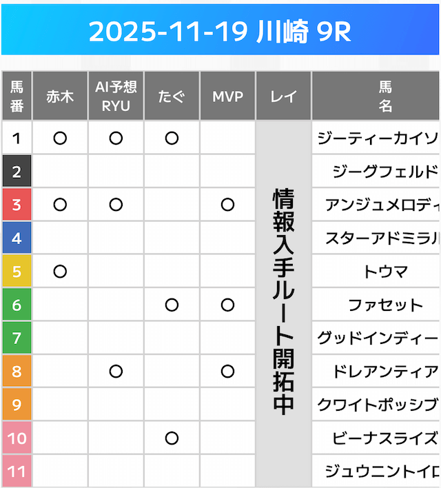 相手には、上位人気を中心に穴馬を絡めた選出です。