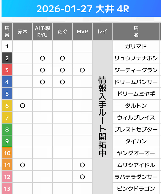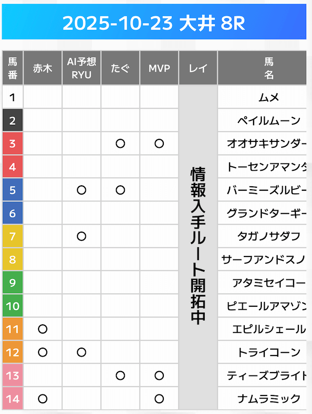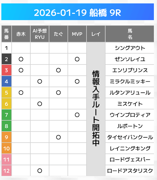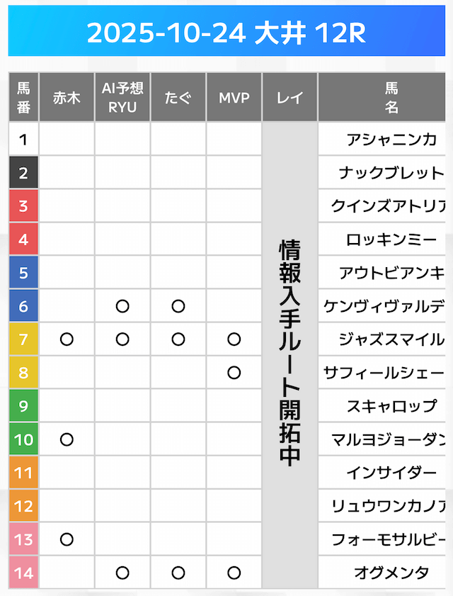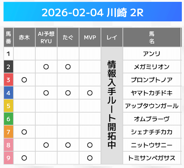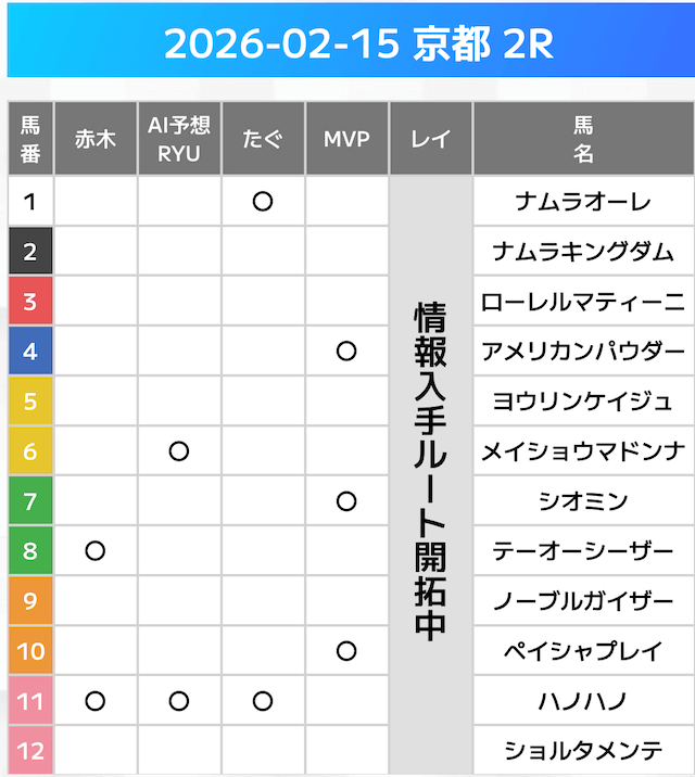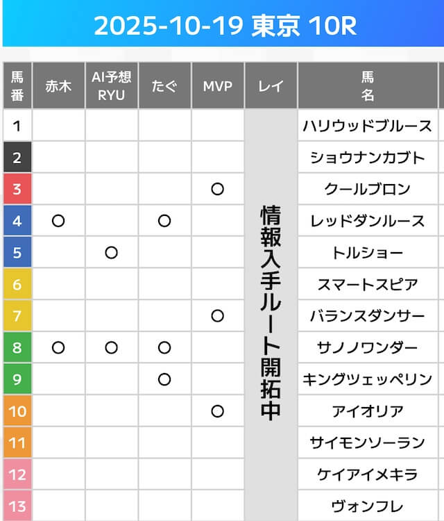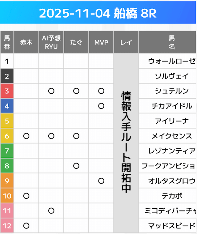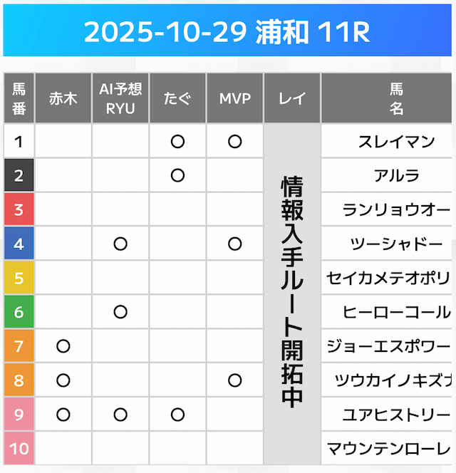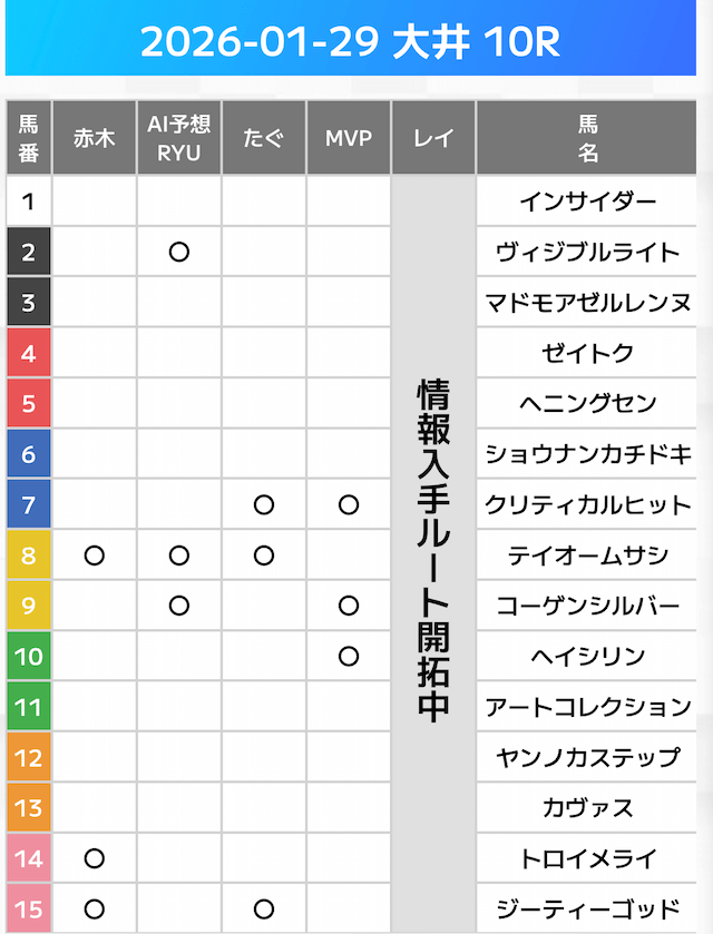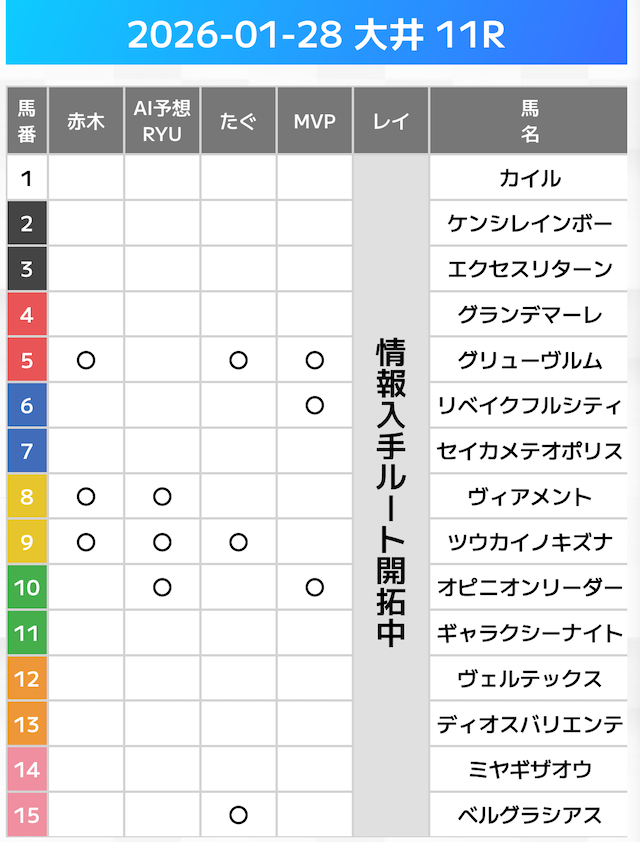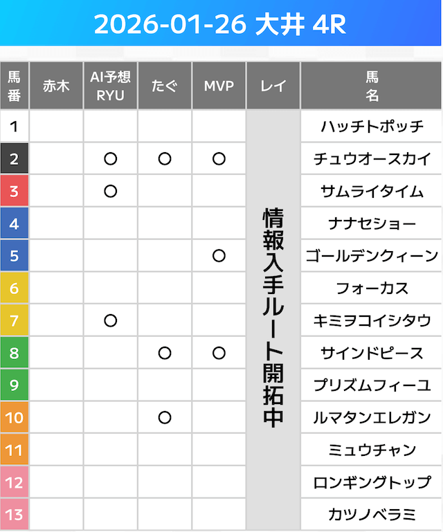 相手には、上位人気を中心に穴馬を絡めた選出です。