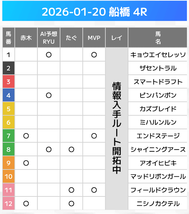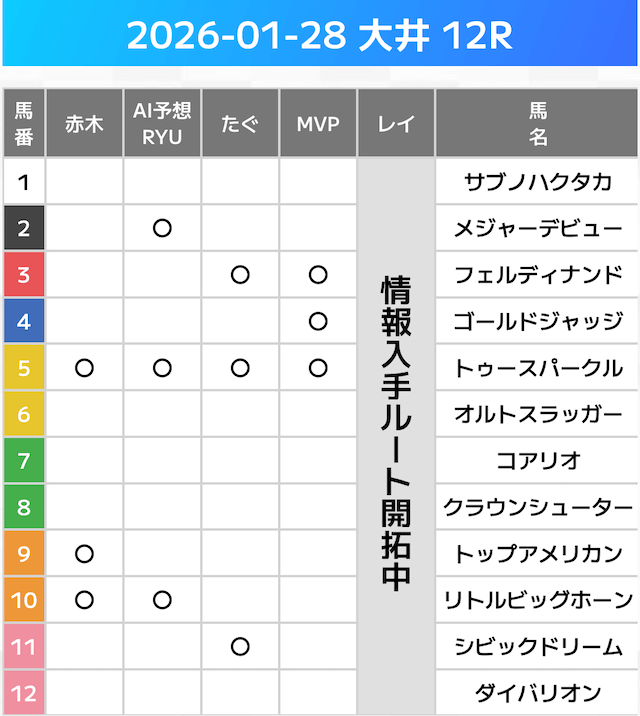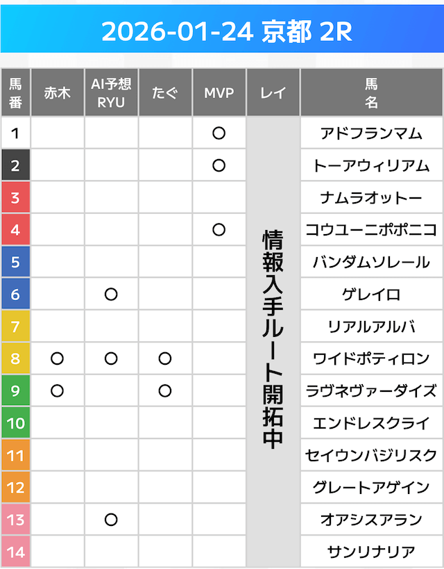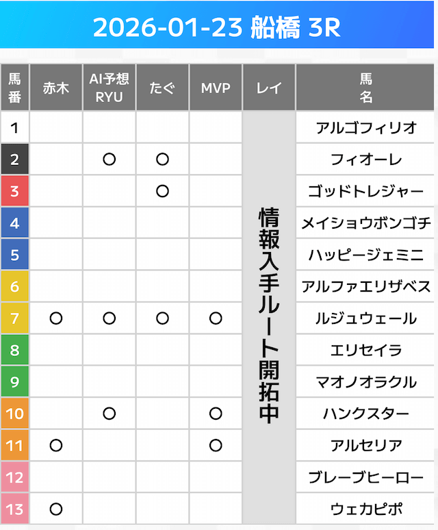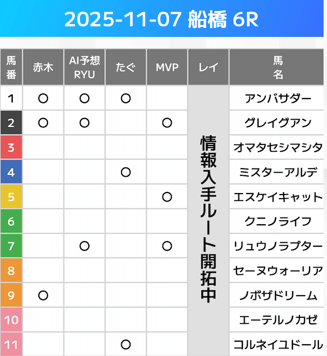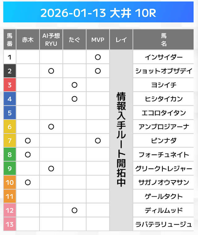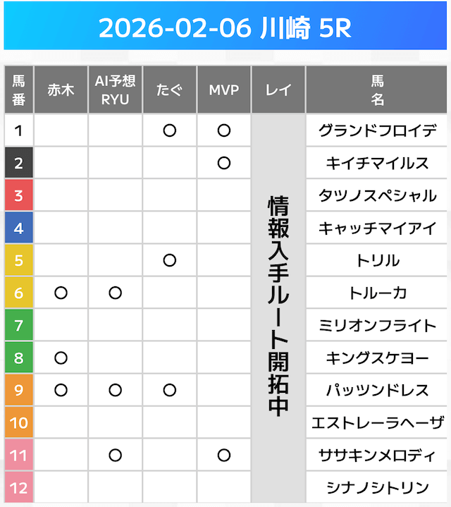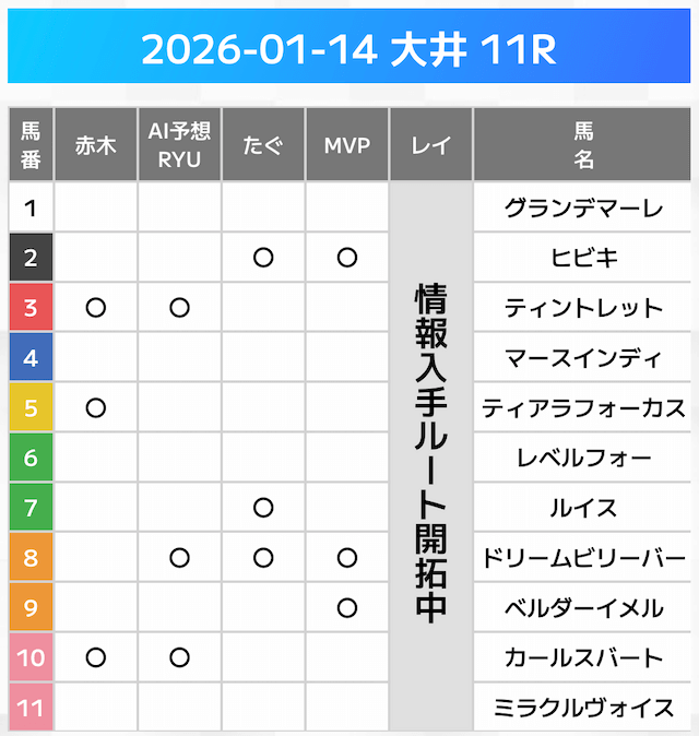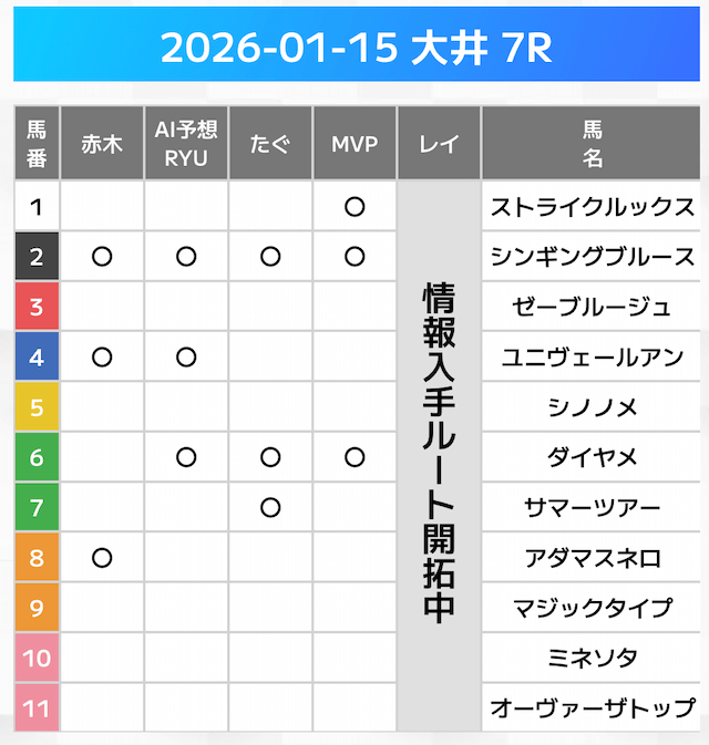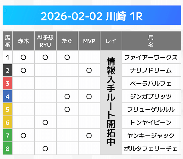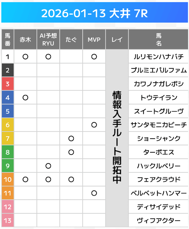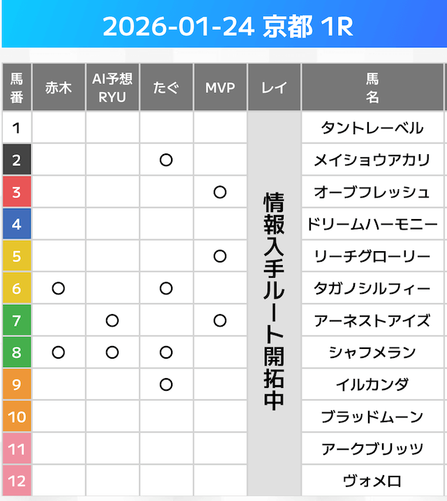 相手には、上位人気を中心に穴馬を絡めた選出です。