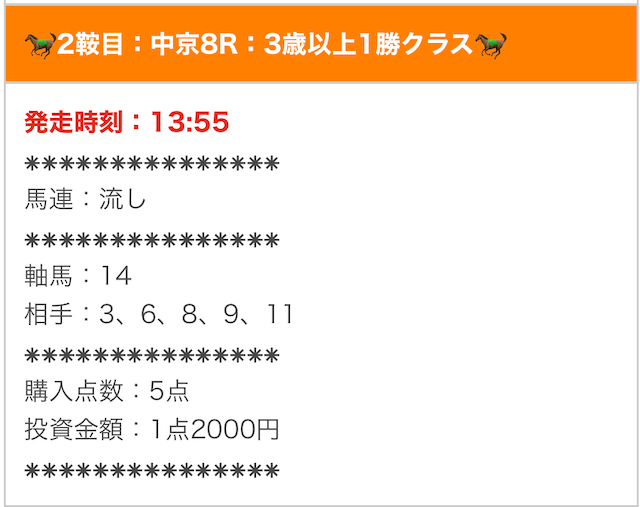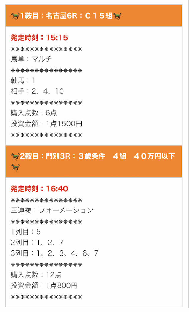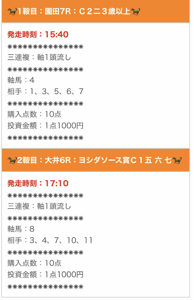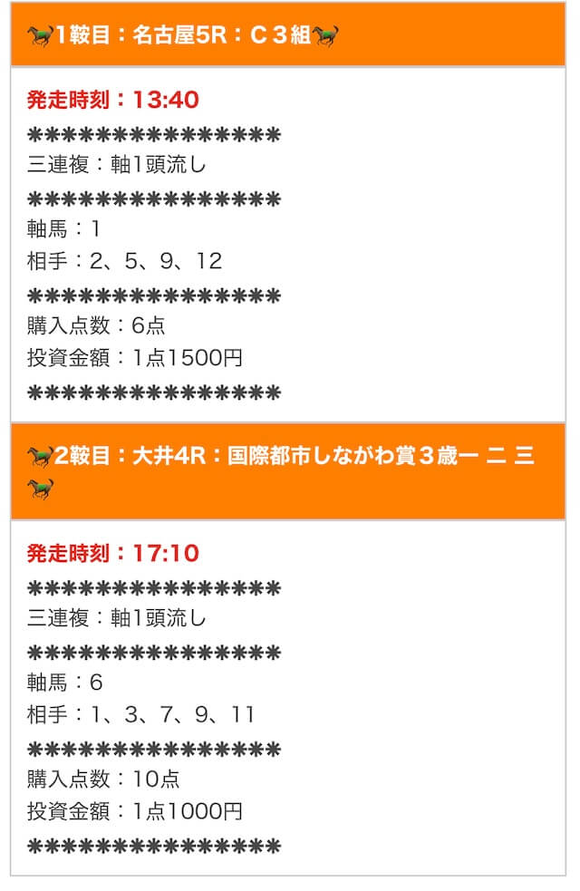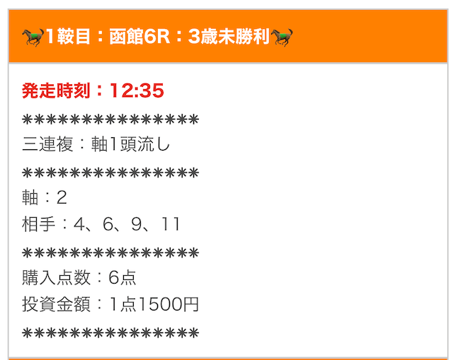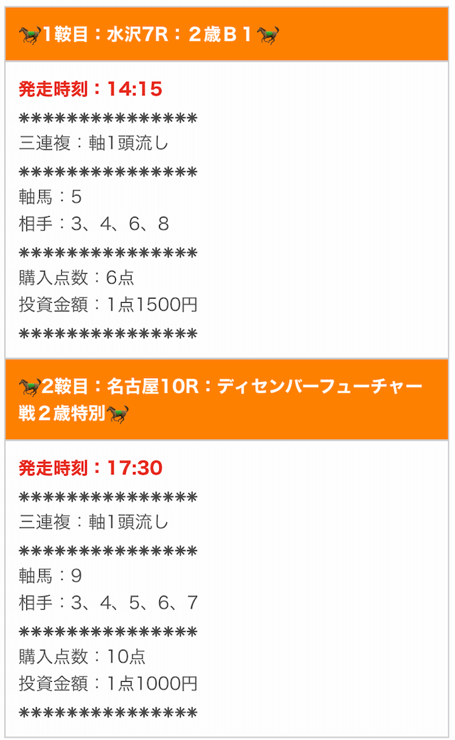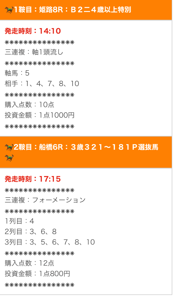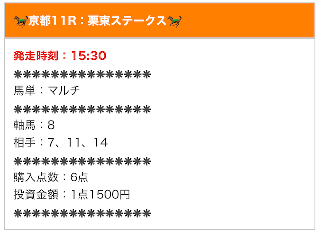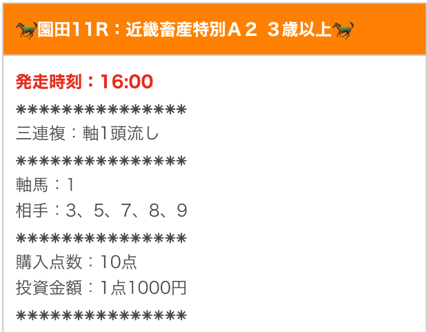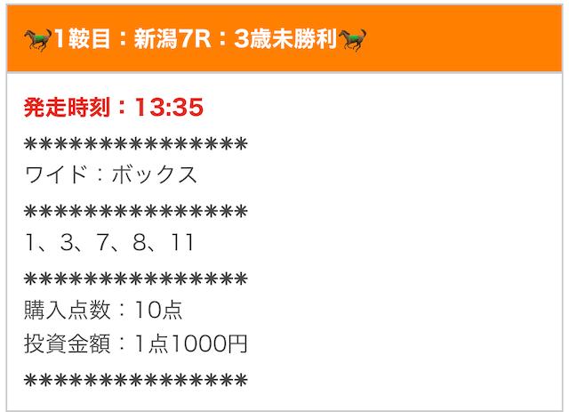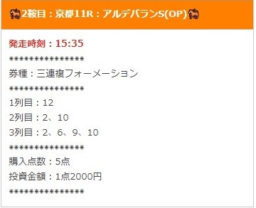 では、実際に公開された買い目を確認します。