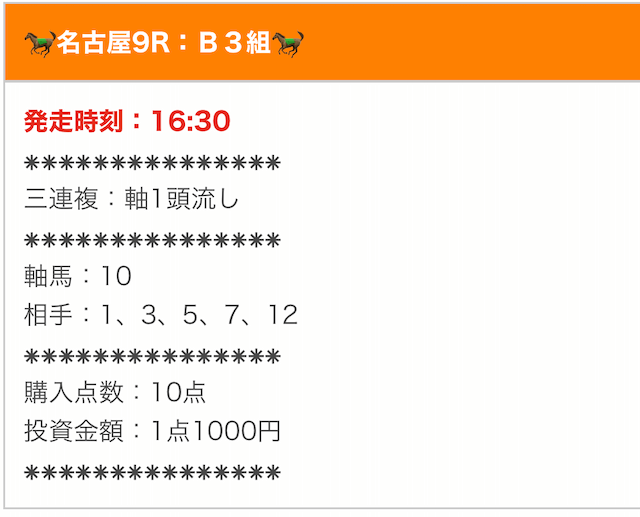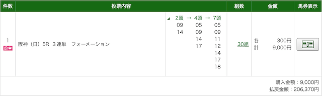 - 馬券代:1点5,000円 計10,000円