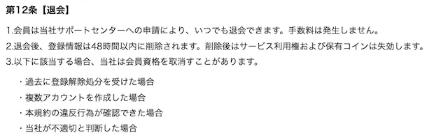| 退会方法について | ⭕️ | 申請を行えば、いつでも退会できる |