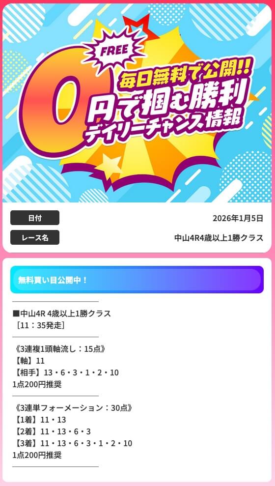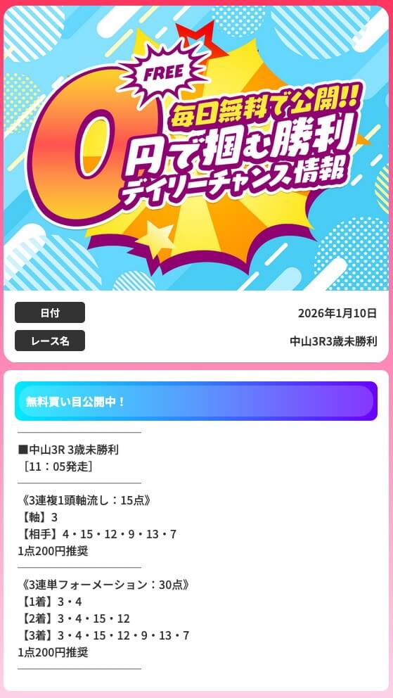 一撃で回収できた日もあるし、運が噛み合えば十分楽しめる無料予想だね