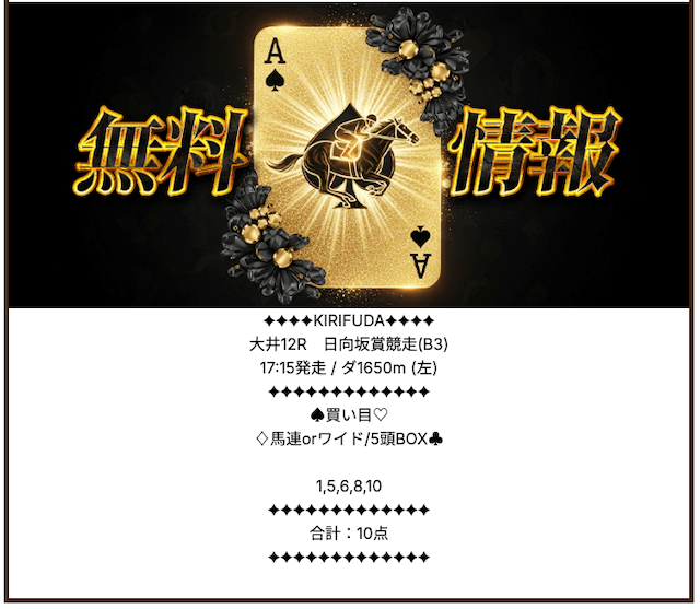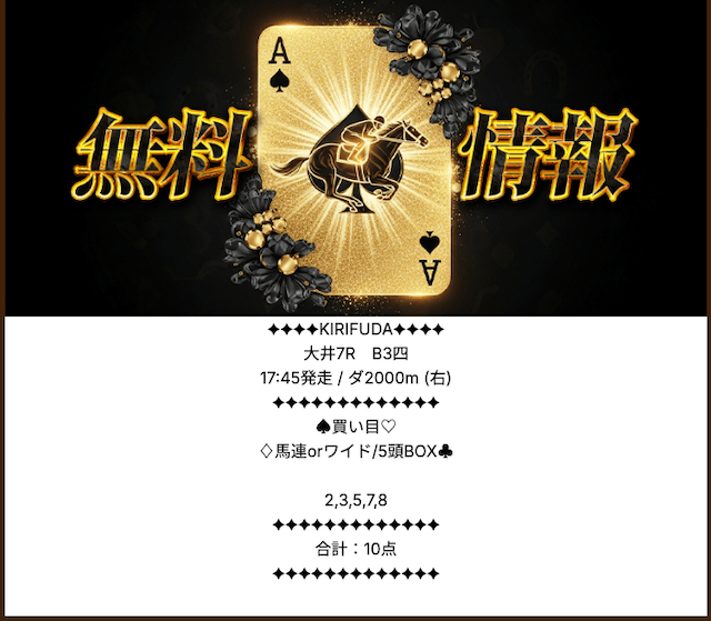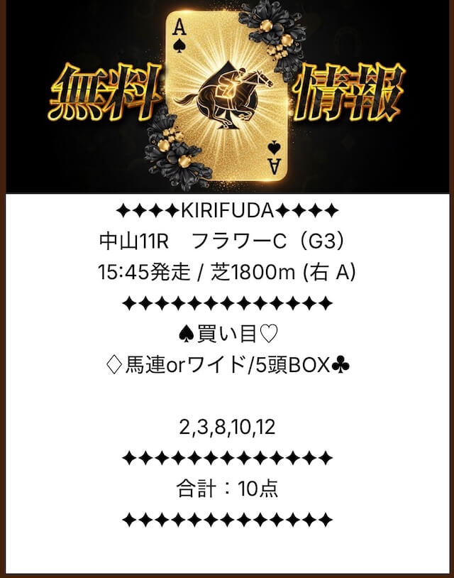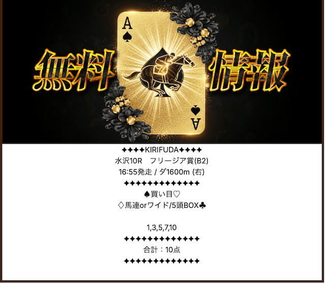 無料予想からしっかり高配当を獲得したい方には、ぴったりと言えるでしょう。