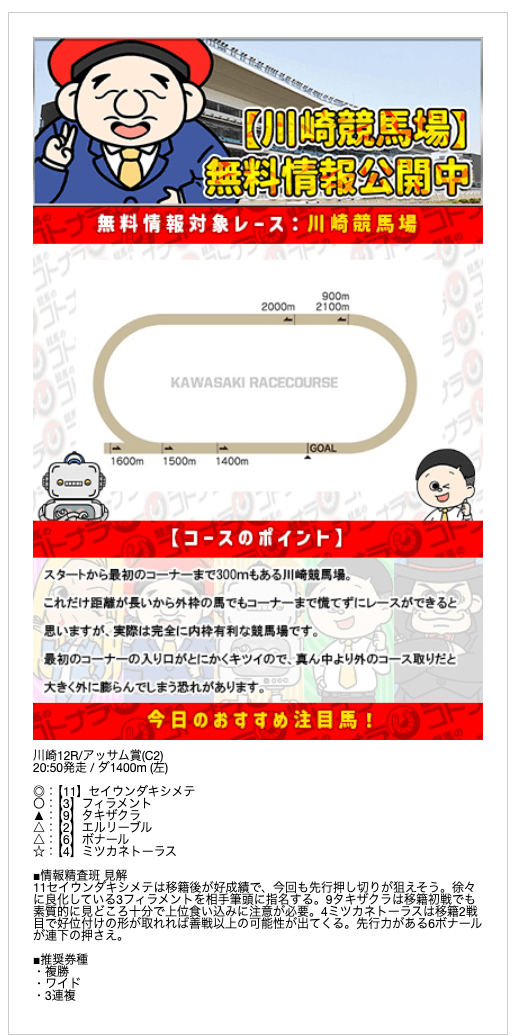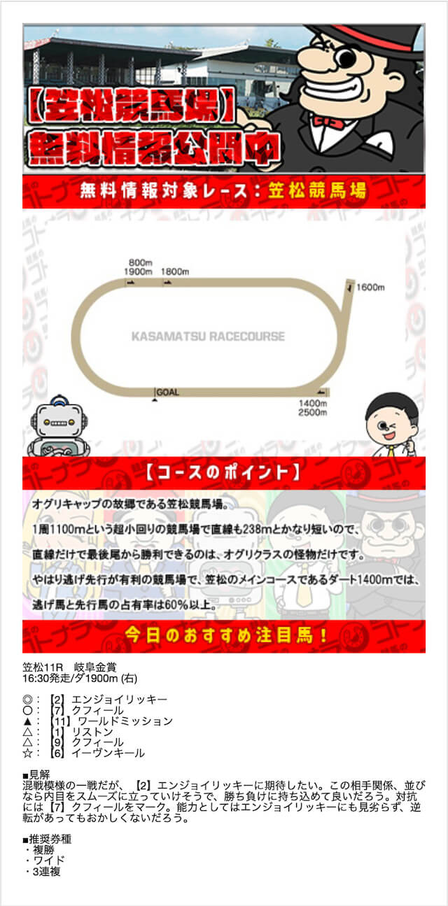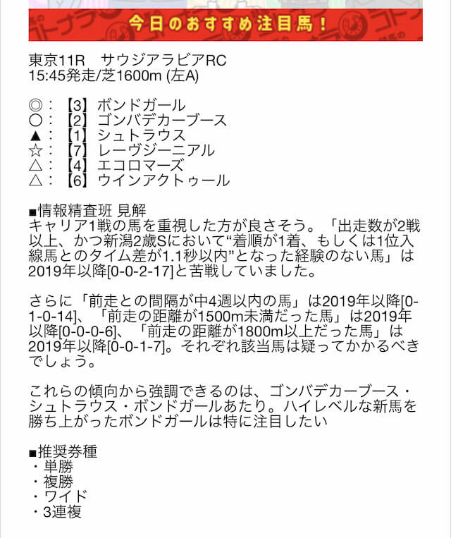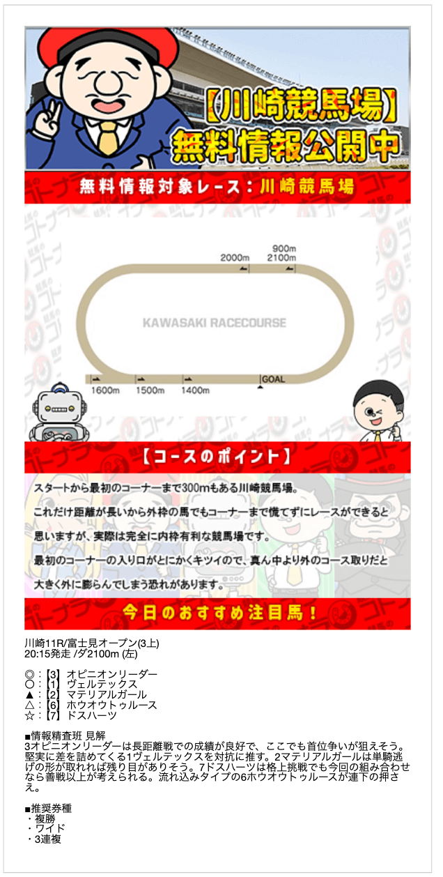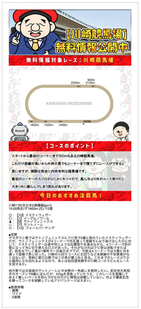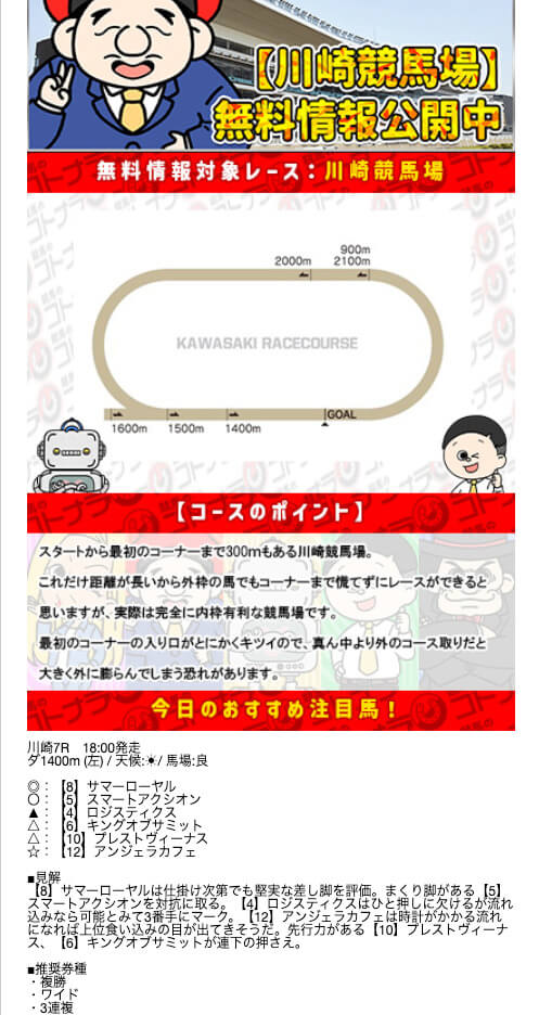 無料予想の結果次第では、非常にオトクな特典になりそうです。