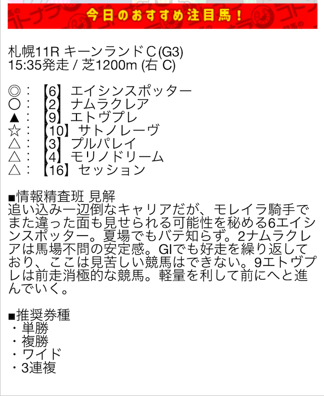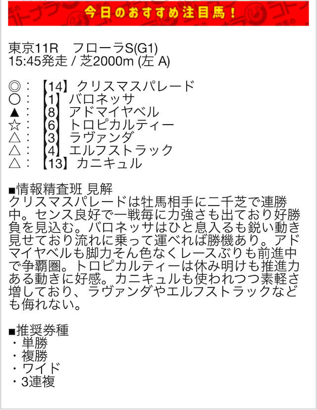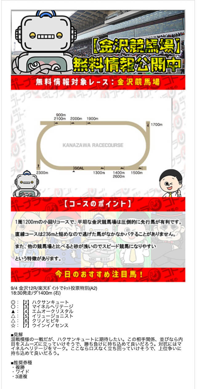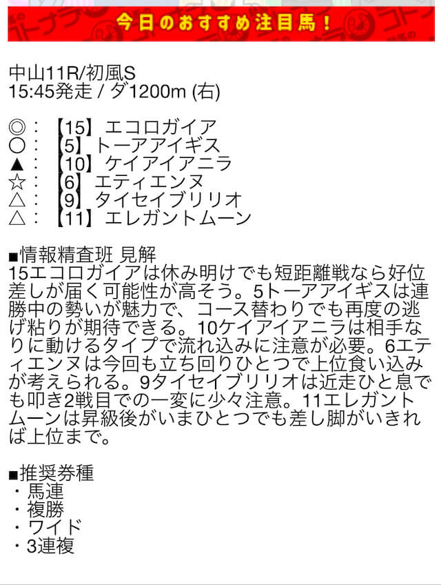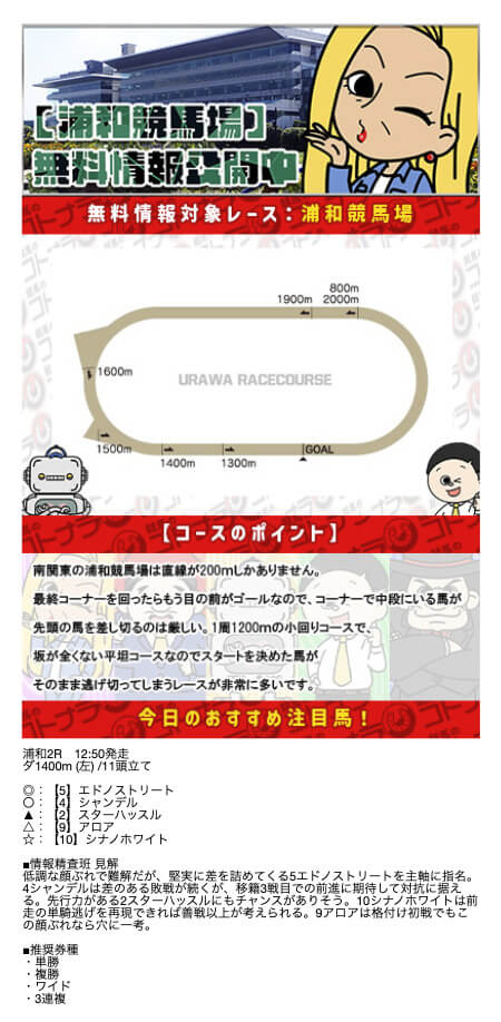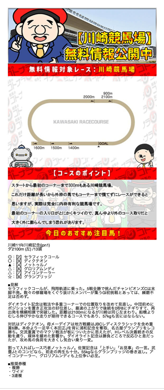 無料予想の結果次第では、非常にオトクな特典になりそうです。