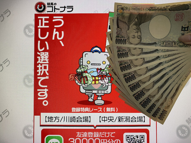 競馬のコトナラでは現在、30,000円分のチケットをプレゼント中です。