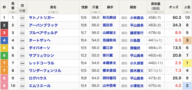 - 対象レース:浦和8RC1七