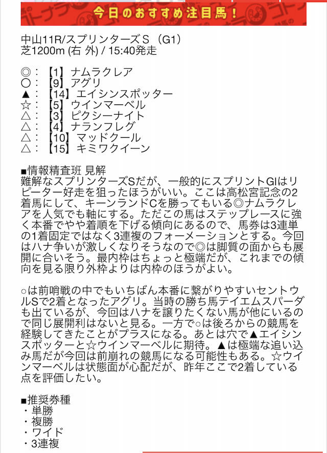 今月から競馬を始めた初心者だから、買い目の解説がめっちゃありがたいナ〜