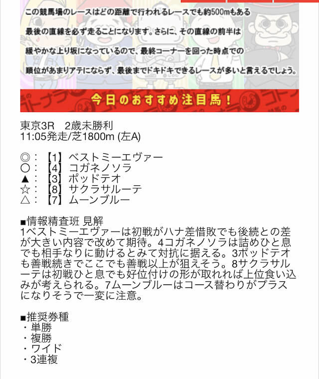 また、競馬競馬のコトナラの予想は印なので、どう馬券を構成すればいいか分からないとの口コミも。