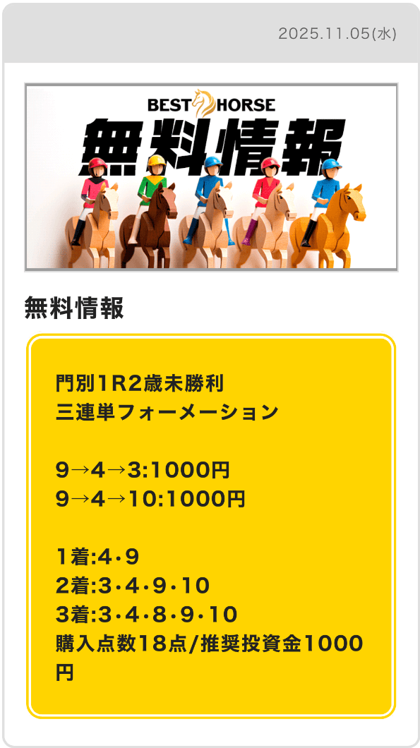 ベストホースの有料予想「勝ち馬の法則」1レース目