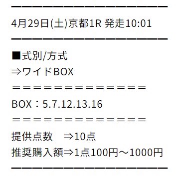 今レース、未来競馬はワイドのボックスで予想を公開。
