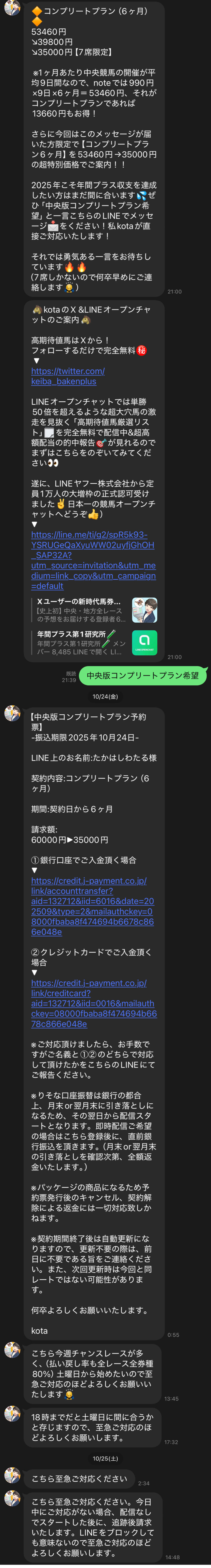 公式LINEで「購入希望」と送っただけで購入を義務化する脅迫メッセージが来ます。