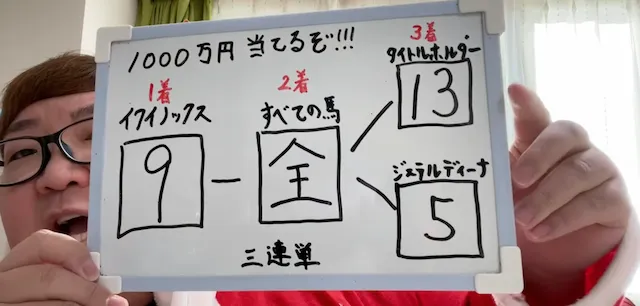 代わりに、三連複に130万円、単勝に300万円を賭ける予想を公開。
