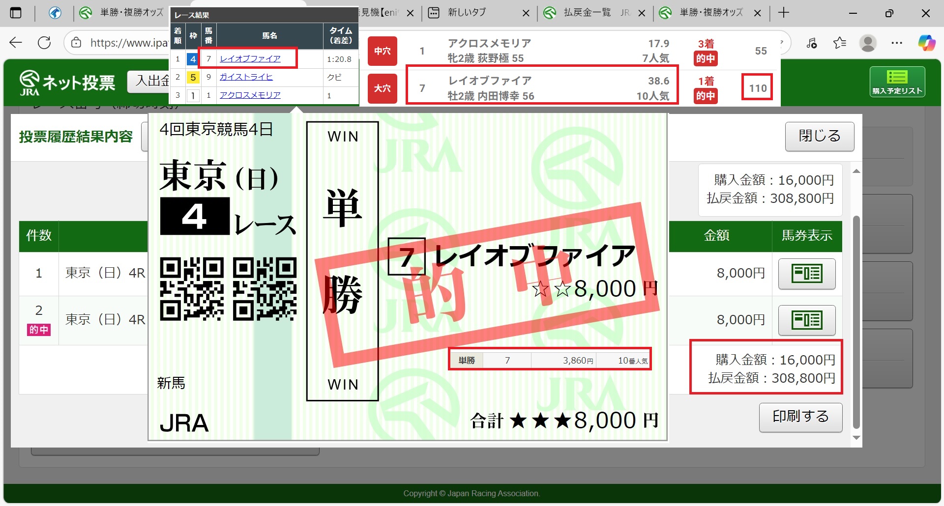 意外にも2頭が絡む惜しい予想となりましたが、結果は不的中。