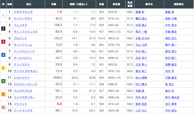 | ⑩ | サンライズオネスト | 15.4倍 | 4番人気 |
