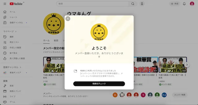 - ウマキんグのチャンネルから「メンバーになる」をタップ