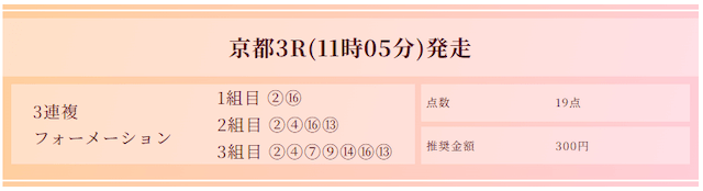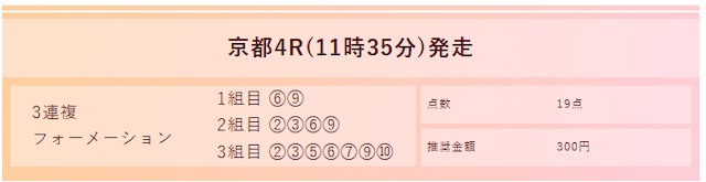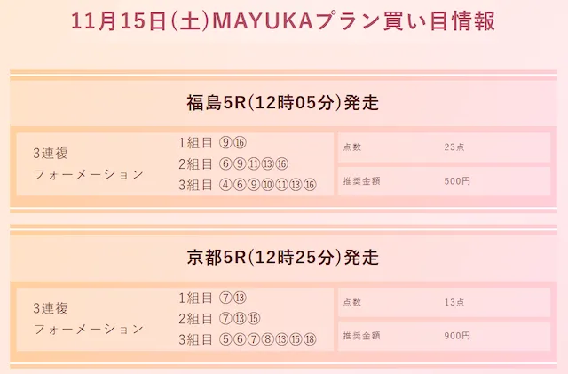 | MAYUKA | ’25/11/15 福島5R・京都5R | ◯・◯ | +246,480円 | 50,000円 23,200円 | 309,680円 |