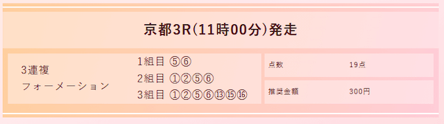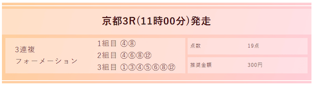 | '25/11/22/京都03R | ◯ | 102,500円 | 19,000円 | +83,500円 | 3連複 |