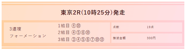 | '25/10/04/東京02R | ✕ | 0円 | 19,000円 | -19,000円 | 3連複 |