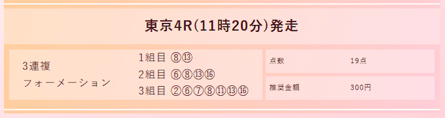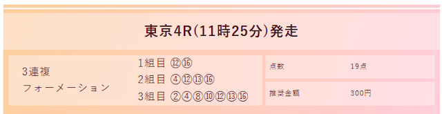 | '25/11/16/東京04R | ◯ | 390,500円 | 19,000円 | +371,500円 | 3連複 |